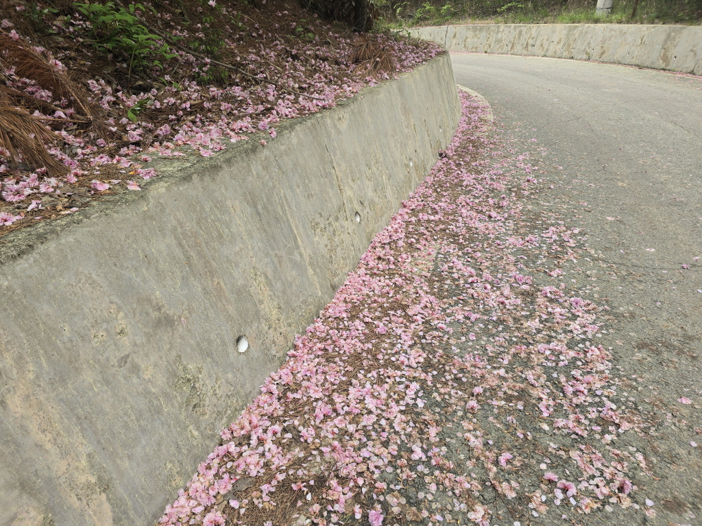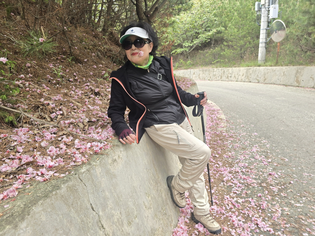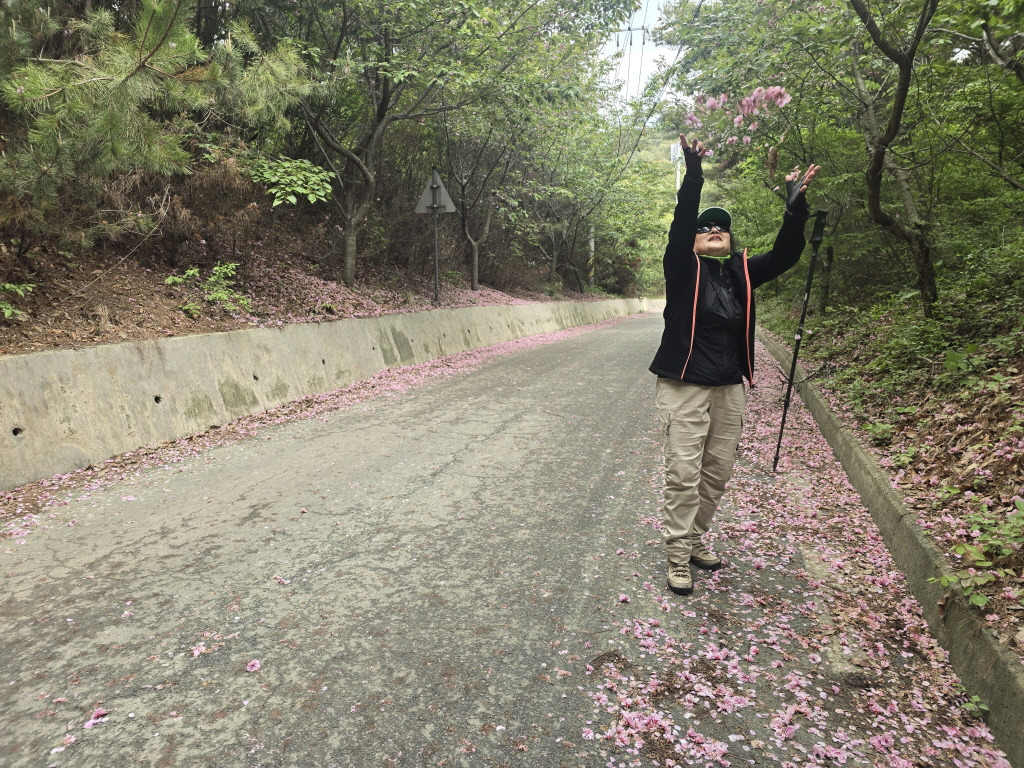떨어져 있는 겹벚꽃 잎을 휘날리며 -----