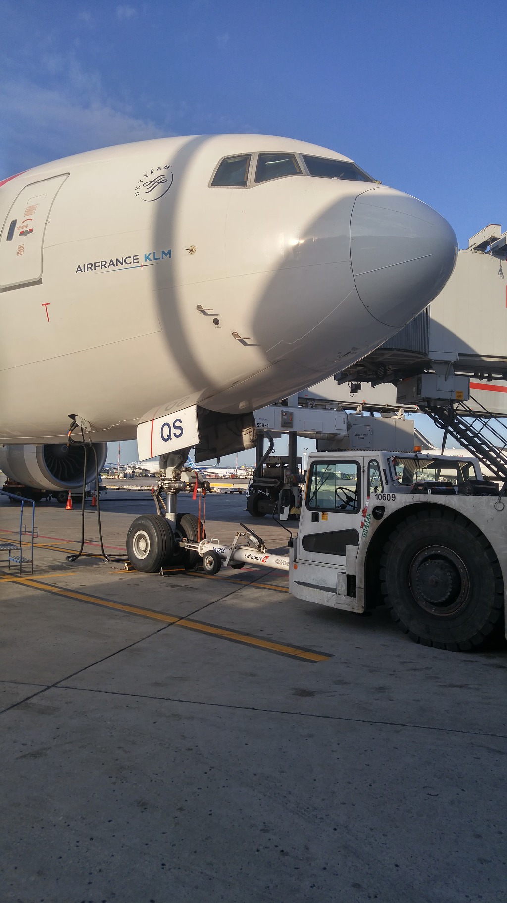 공항 주기장에서 저희가 하는 일중 가장 흥미진진한 일은 단언컨데 푸쉬백/항공기 견인이 아닐까 싶습니다. 제가 항상 열심히 하는 모습이 회사에게도 전달이 됐는지 입사 후 약 8개월만에 지상조업팀장으로 승진을 했습니다. (팀장이라는 표현이 맞는지는 모르겠습니다. 여기선 Ramp Team Lead 라고 부릅니다.) 지상조업시 한 항공기 조업에 투입되는 팀원들을 지휘해서 효율적으로 조업을 진행하는 것이 팀장의 주 임무인데, 저희 회사의 경우 일반 직원들은 할수 없는 팀장의 부수적인 다른 임무들로는 비행기 마샬링과 푸쉬백 운전이 있습니다. 마샬링도 재밌지만 푸쉬백은 정말 재밌었습니다.ㅎㅎ 제가 견인해본 비행기중 제일 큰 보잉 777-300ER 을 밀어낼때 전해지는 묵직함과 감칠맛나는 손맛은 아직도 잊을수 없습니다.^^ 물론 처음에 푸쉬백을 배울때는 벌벌 떨면서 엄청나게 긴장이 됩니다만, 모든 일이 그렇듯 경험이 쌓이면 대담해지고 요령도 생깁니다.ㅋㅋㅋ 400명이 탑승해있는 날개넓이/동체길이 약 75m, 이륙중량 300톤 짜리의 몇천억원 가치의 대형 여객기를 Pushback Tug 와 강철 토우바 하나에 의지해서 밀어낸다고 생각하니 떨리지 않을수는 없겠네요.^^;;