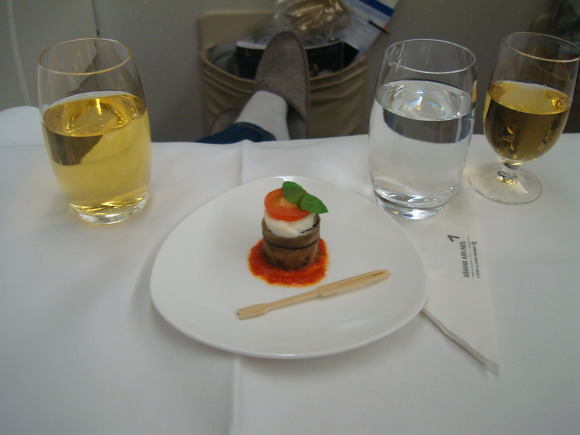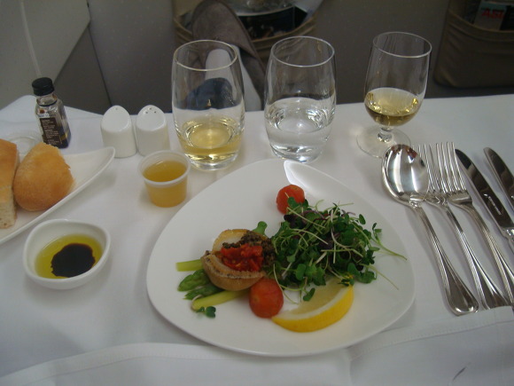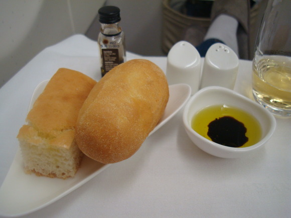 빵을 올리브 발사믹과 서브해 주십니다. 빵을 먹으면 계속 가져다 주시기 때문에 아주 천천히 먹었습니다... 역시 국적사와 외항사의 서비스 차이가 이런곳에서 발휘 되는 것이겠죠?^^