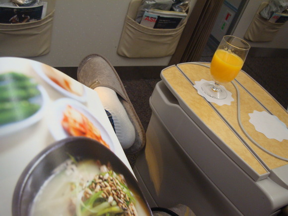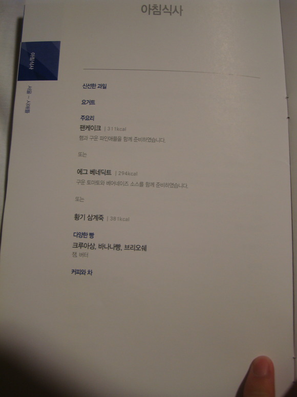 급하게 화장실을 여러번 다녀오고 도착 2시간 30분전 아침식사가 제공됩니다.