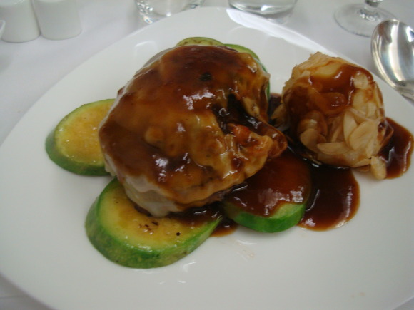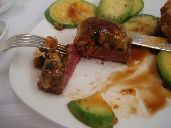 드디어 메인메뉴 입니다. 안심스테이크에 사이드는 올리브에 볶은 호박과 아몬드를 곁들인 스메쉬드 포테이토입니다.