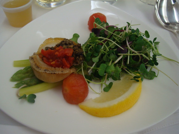 카나페입니다. 가지 요리인데 전혀 가지 맛이 느껴지지 않고 소고기 같았습니다.