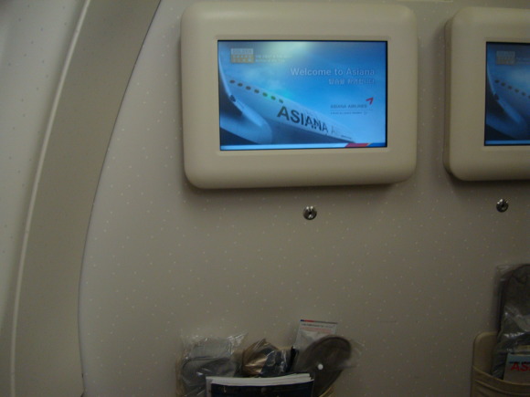 Welcome to the Asiana Airlines, 사무장님이 오셔서 인사하시고 어메너티와 슬리퍼가 앞에 있다는것을 상기 시켜주십니다~~
