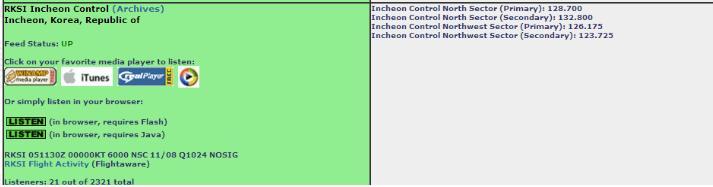 바로 들을 수 있는 링크 : http://www.liveatc.net/flisten.php?mount=rksi_ctr ( Flash 사용시 )