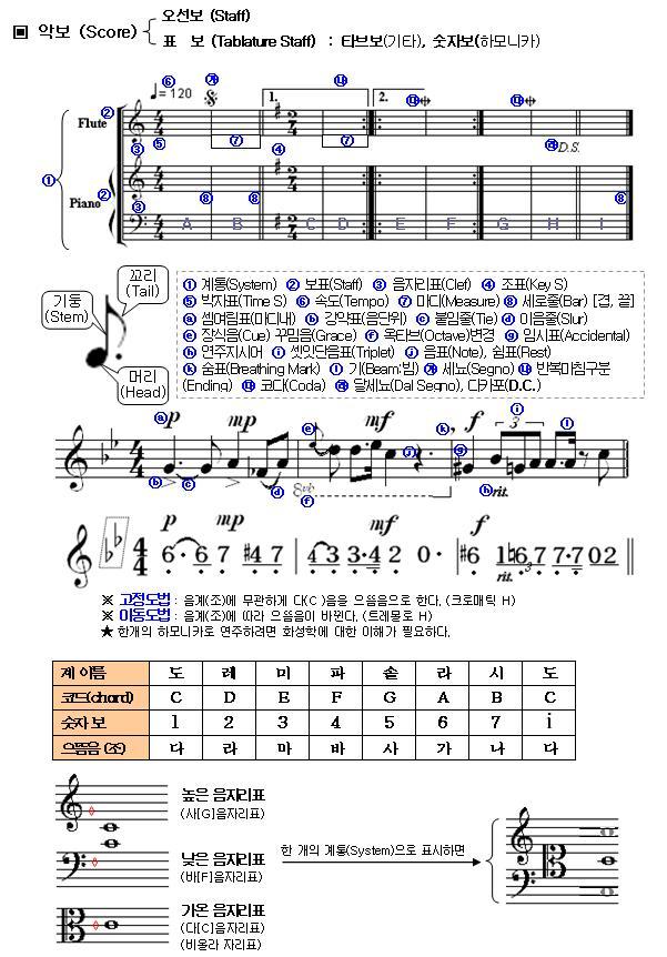 높은음자리표와 낮은음자리표 오선지에 교묘하게 딱 중간에 위치하면서