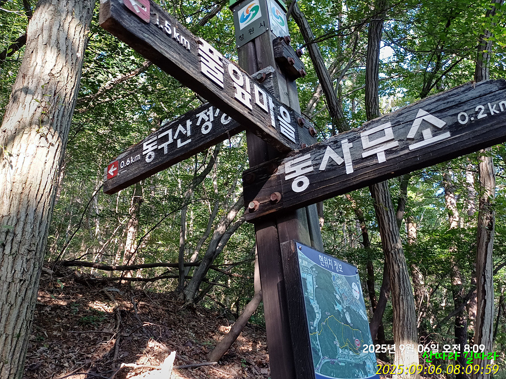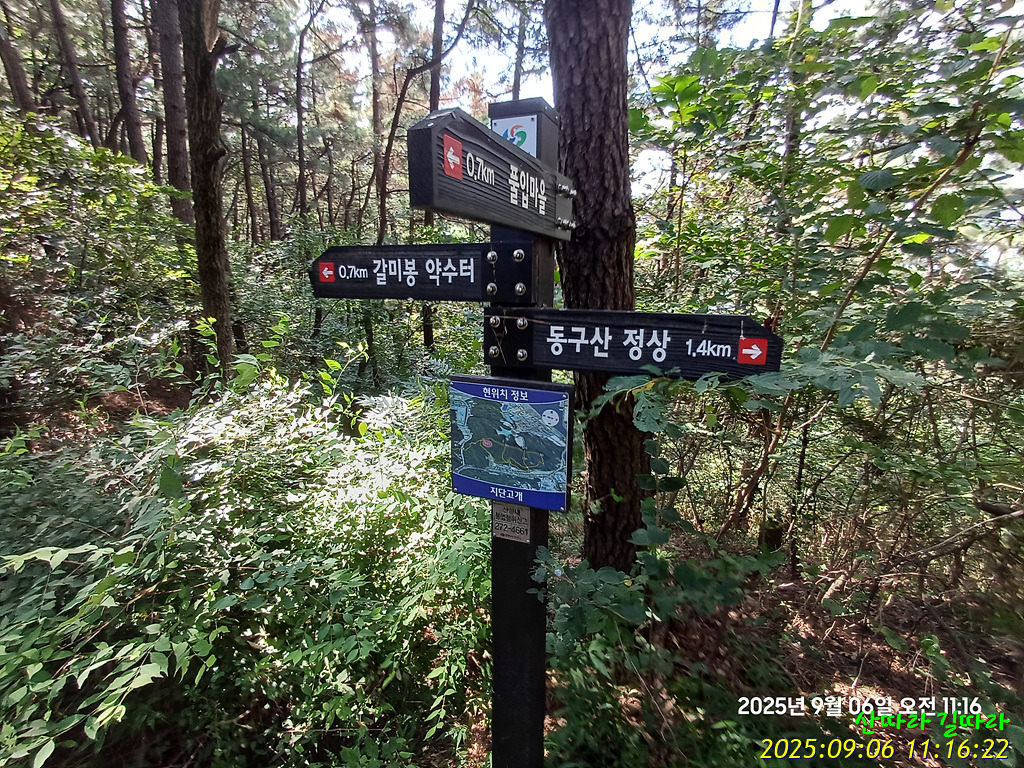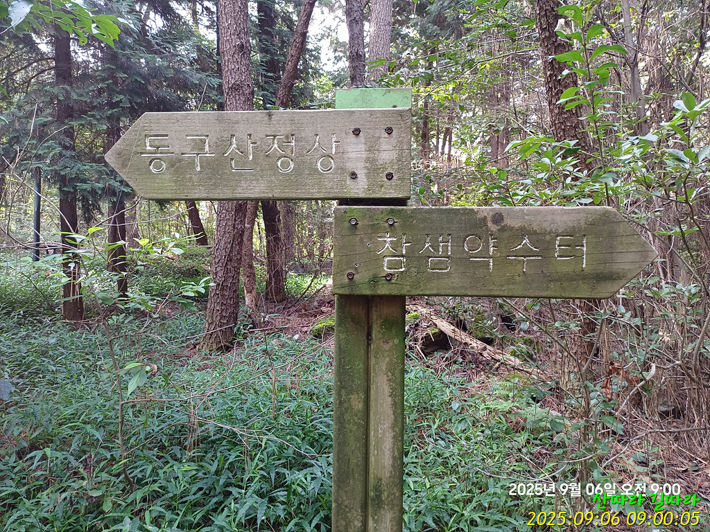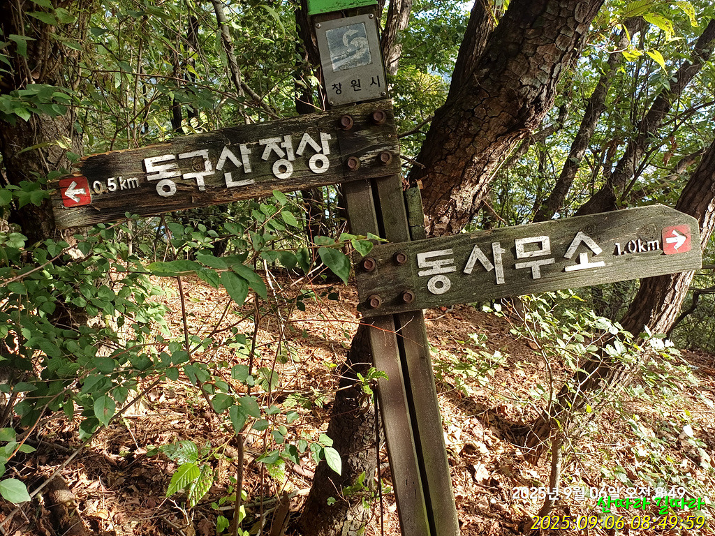 사거리이정표를 만난다. 2022년엔 동구산으로 직진했다.