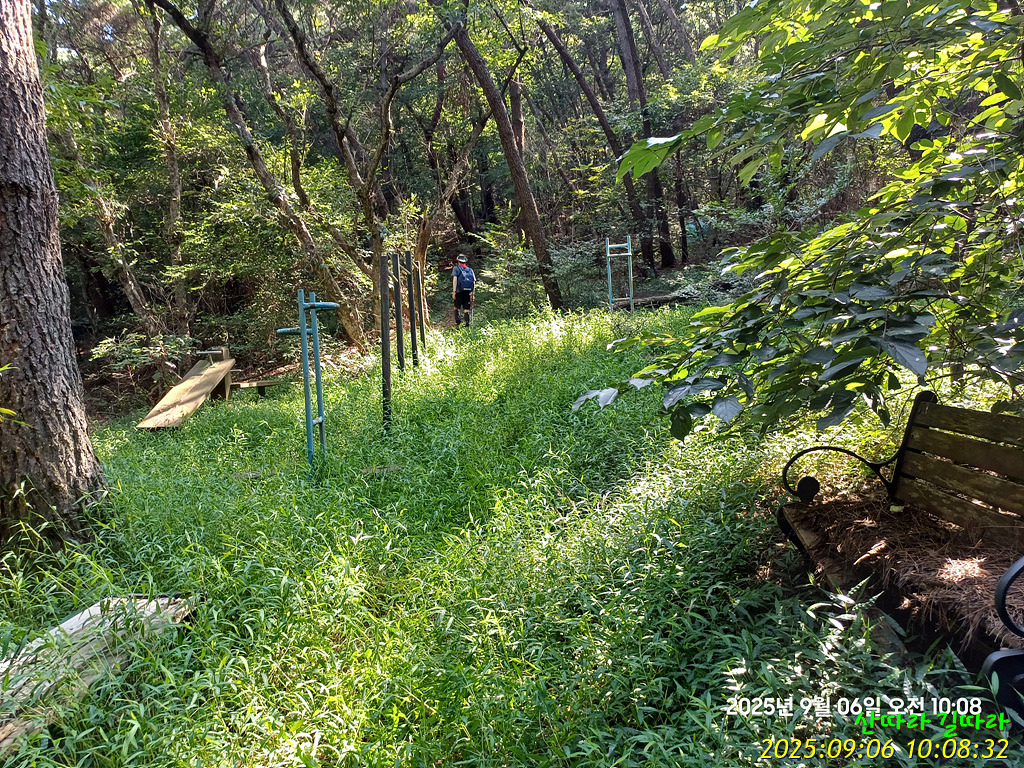 평상과 삭은 벤치가 자리한 체육공원에 내려선다.