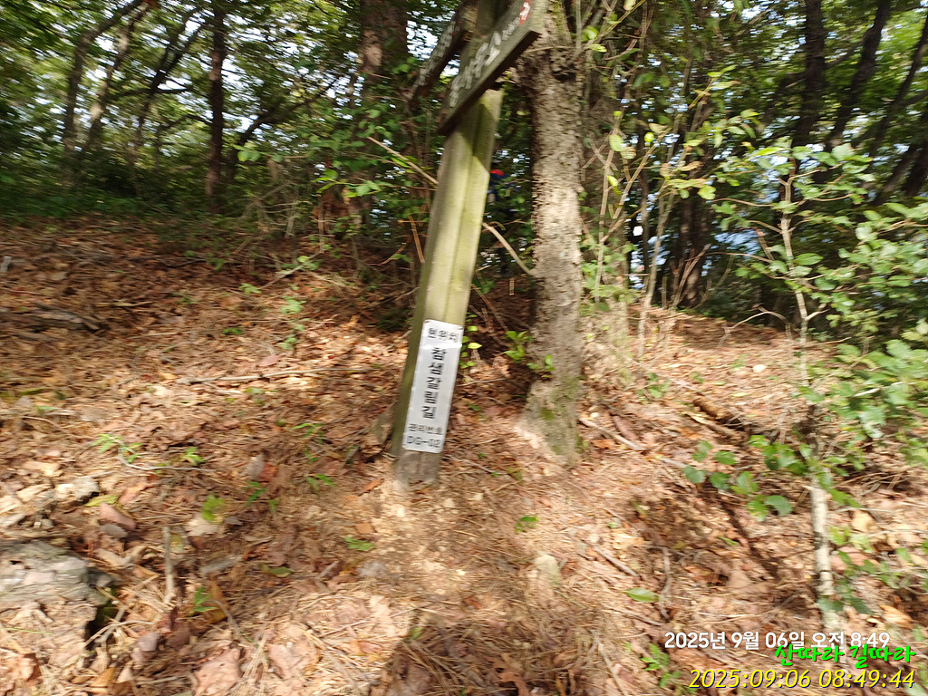 참샘갈림길 이정표를 만나 안내가 없는 오른쪽으로 진입한다.