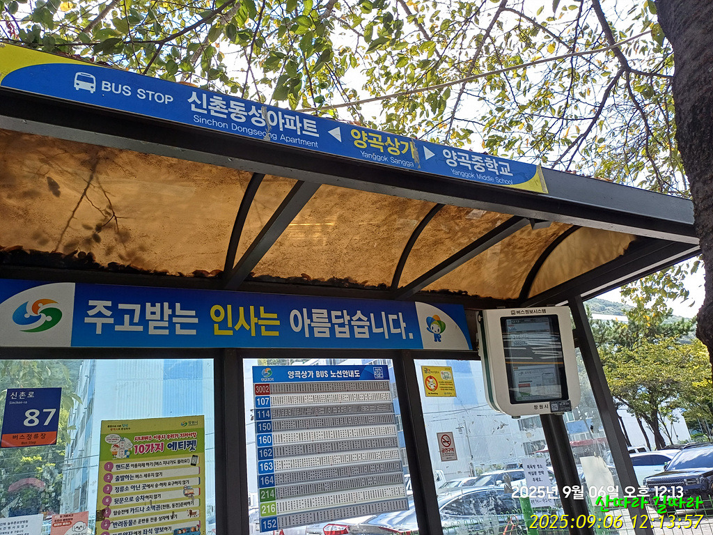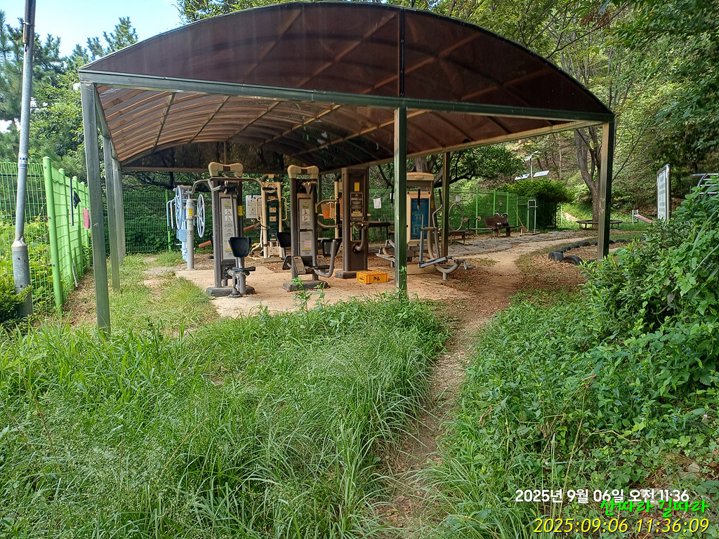 따라가던 양곡천 길을 왼쪽 뒤로 보내니 공원쉼터. 도로건너 왼쪽에서 양곡상가정류장을 만나며 산행을 마친다.