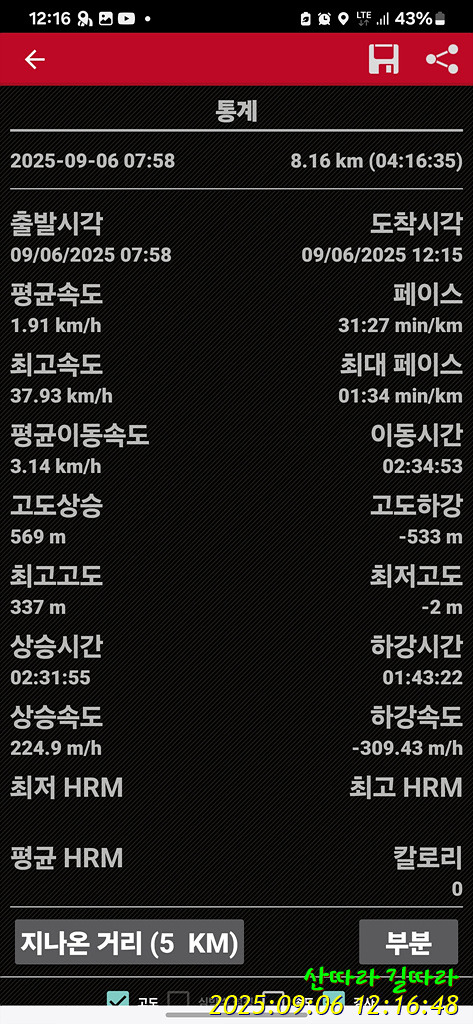 ◈산행시간 : 4시간 17분(7:58-12:15)