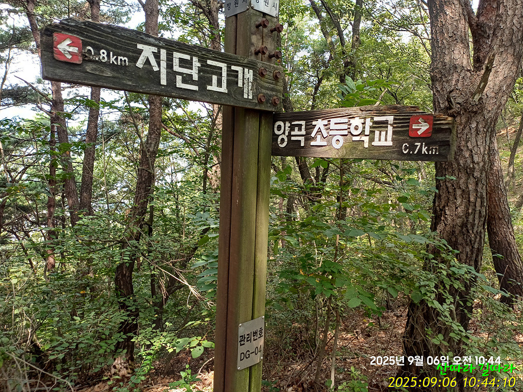 아랫재(지단고개)에 내려선다.