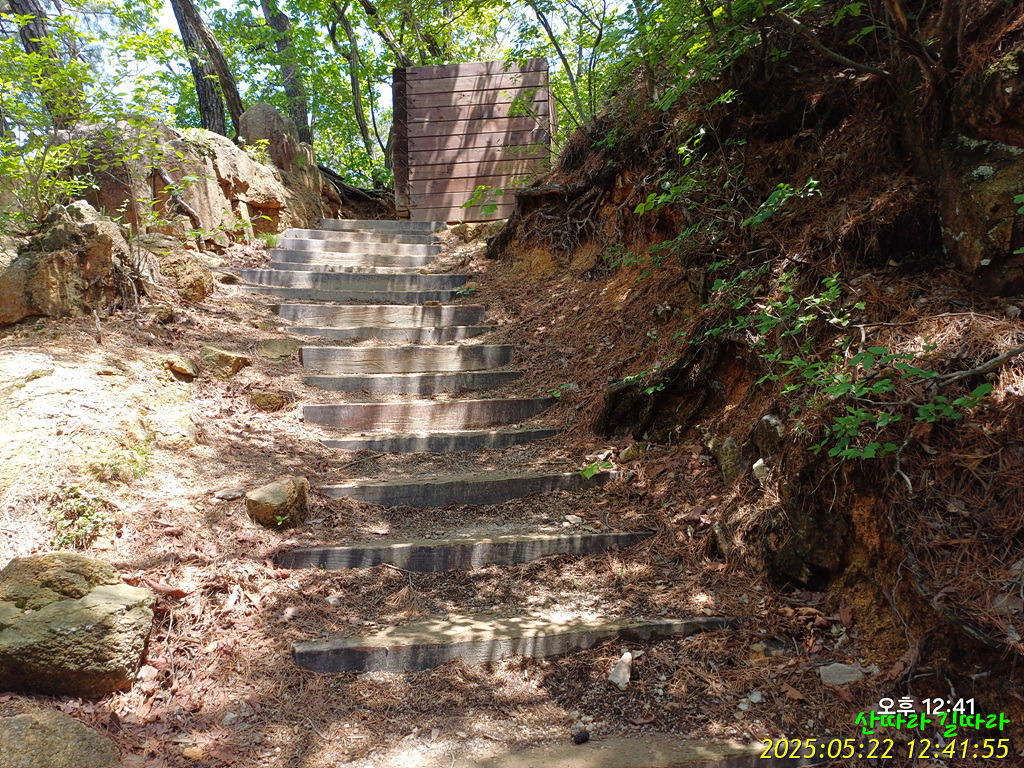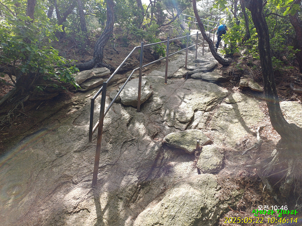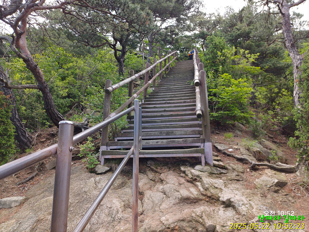 덱으로 올라가면 돌계단. 철난간도 만나며 고도를 높인다.