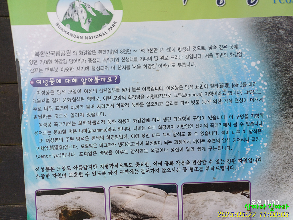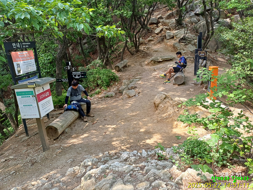북한산국립공원 안내판과 이정표를 뒤로 보낸다.