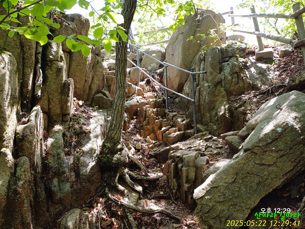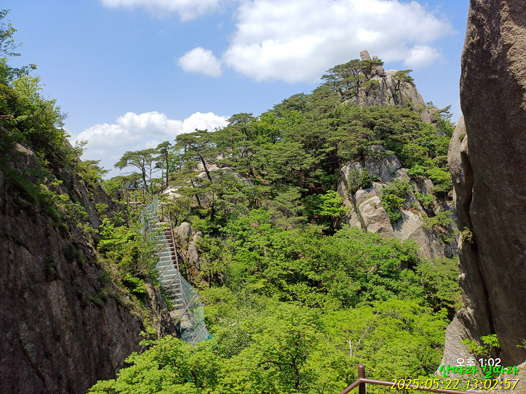 지붕을 갖춘 계단따라 내려가면 양쪽은 막아선 암봉이다.
