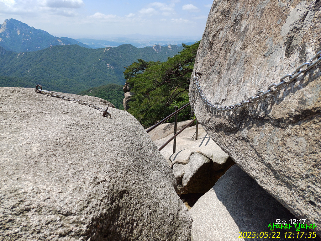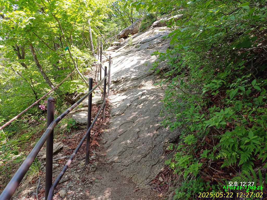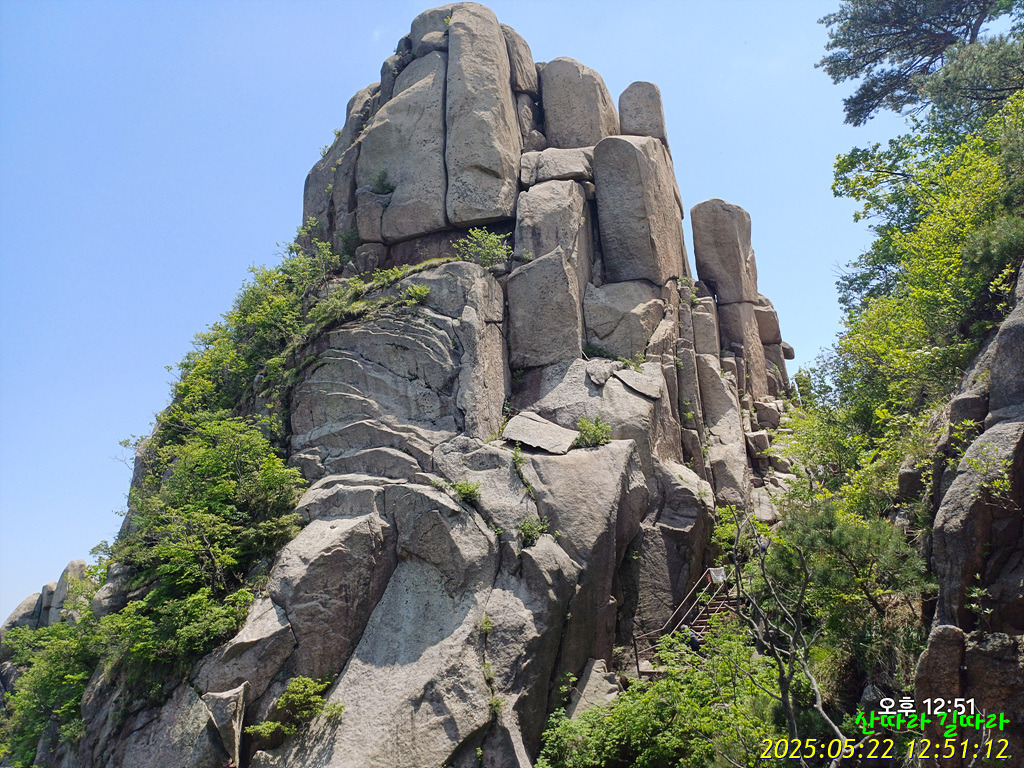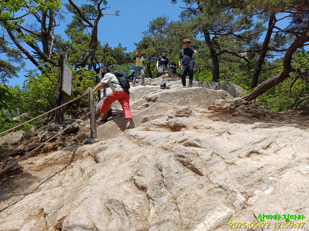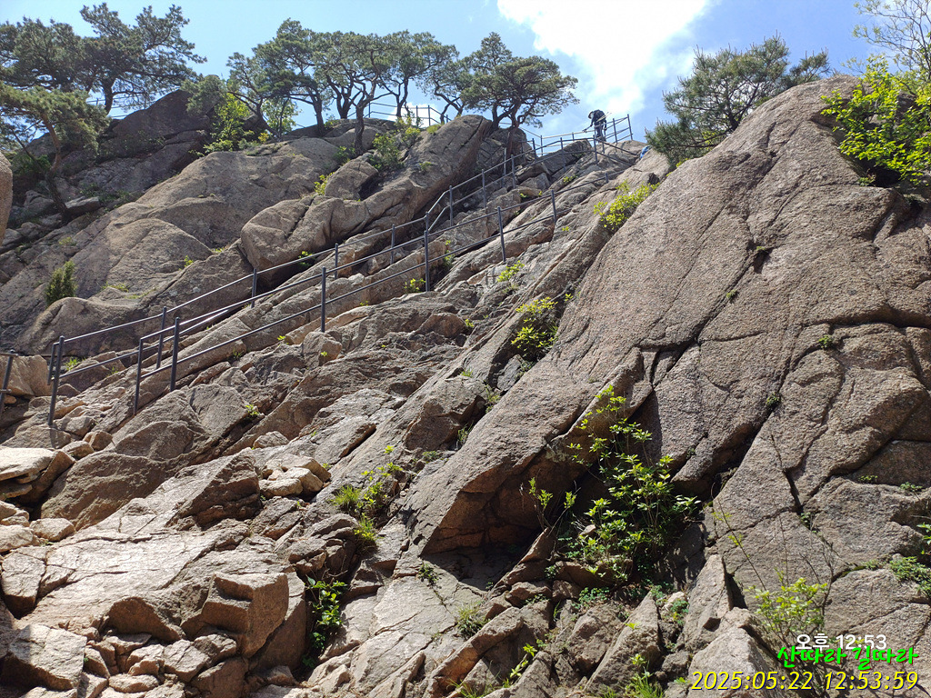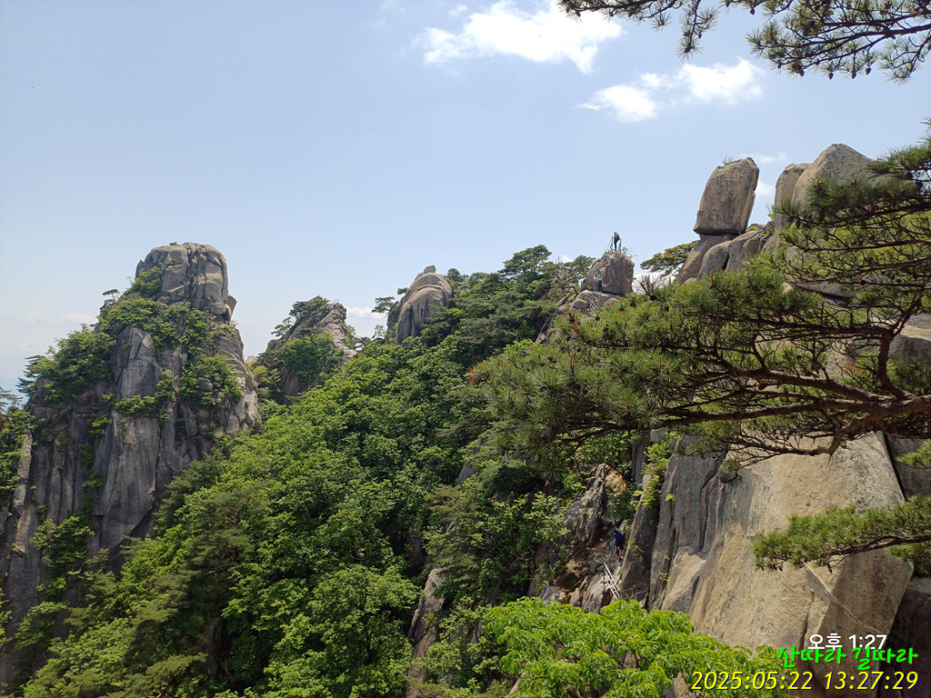 오른쪽 직벽에 가까운 암봉을 철난간을 당기며 올라간다. 예전엔 오르내리는 탐방객이 개미처럼 보였는데 지금은 한산하다.