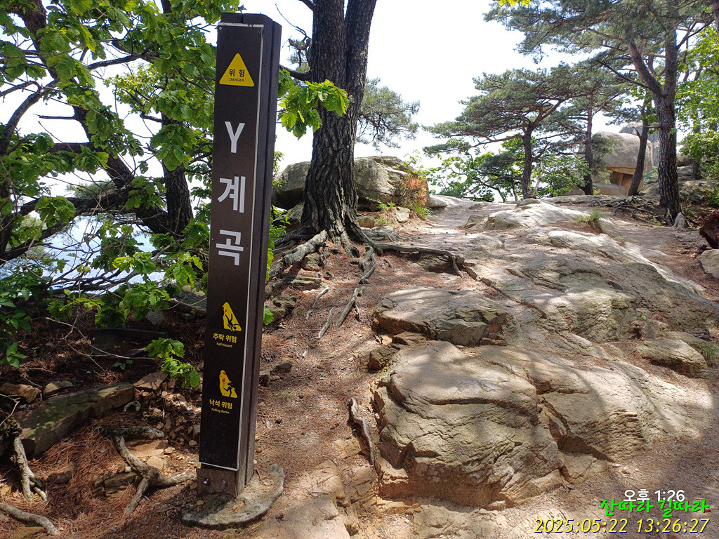 오른쪽으로 치솟으니 Y계곡 표지. 일방통행 표지도 보인다.
