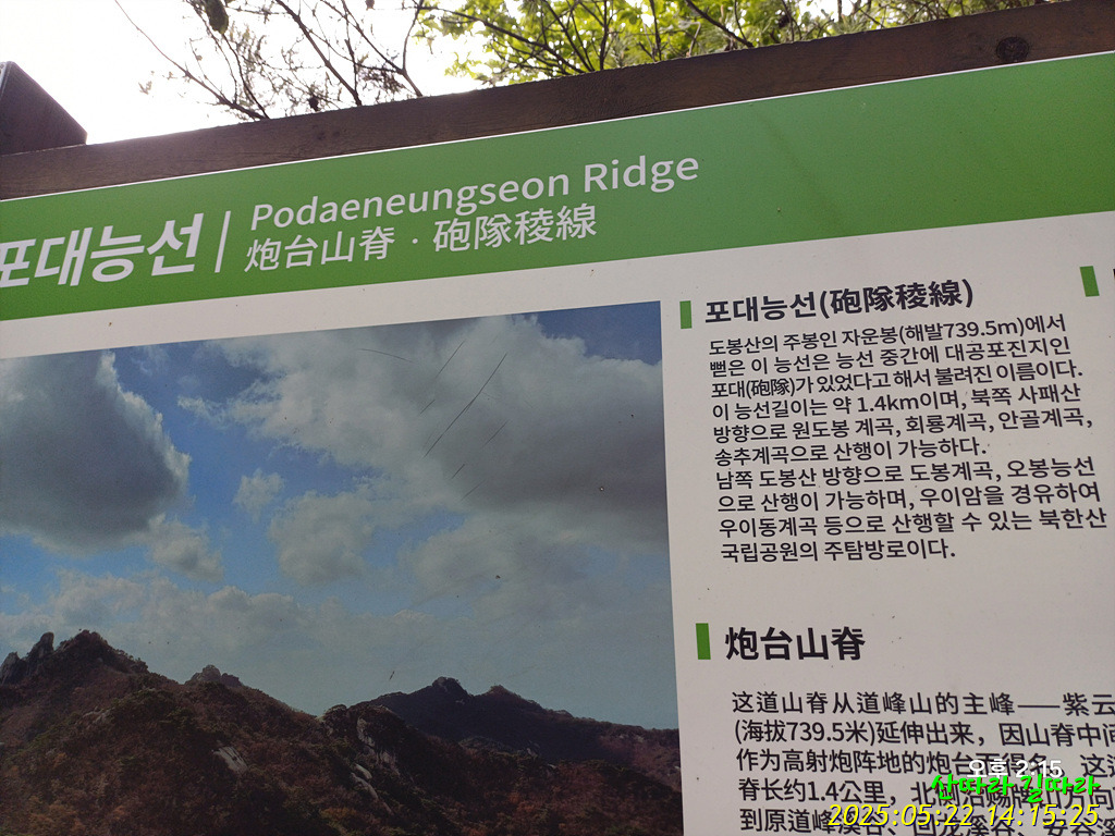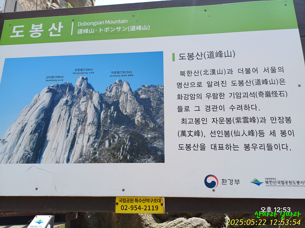 ◈산행구간 : 송추제2주차장→여성봉→오봉→오봉능선→도봉산(신선대)자운봉→포대능선→회룡사거리→송추제2주차장