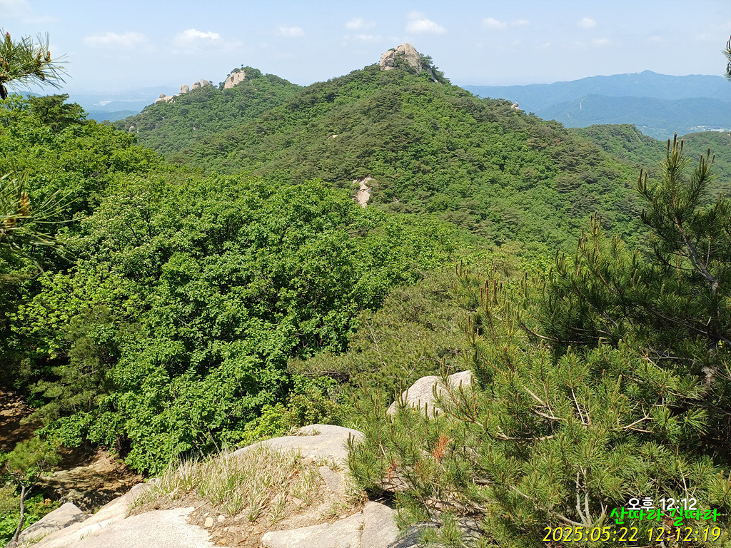 전망바위에 올라선다. 왼쪽 위로 멀리 사패산.