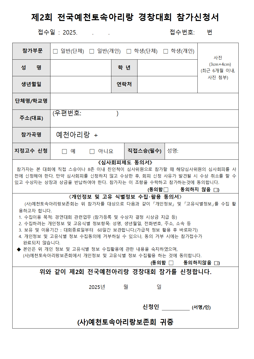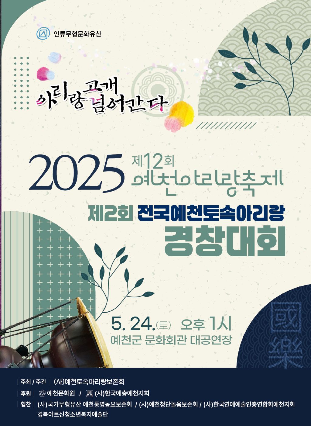 2025년 5월24일 1시 경북 예천군 예천문화회관대공연장 작성자국악최수인|작성시간25.04.14|조회수28 목록 댓글 0 글자크기 작게가 글자크기 크게가 제2회 전국예천토속아리랑경창대회 및 제12회 예천아리랑축제 개최하오니많은 창가 부탁드립니다 다음검색 현재 게시글 추가 기능 열기 북마크 공유하기 신고 센터로 신고 댓글 댓글 0 댓글쓰기 답글쓰기 댓글 리스트