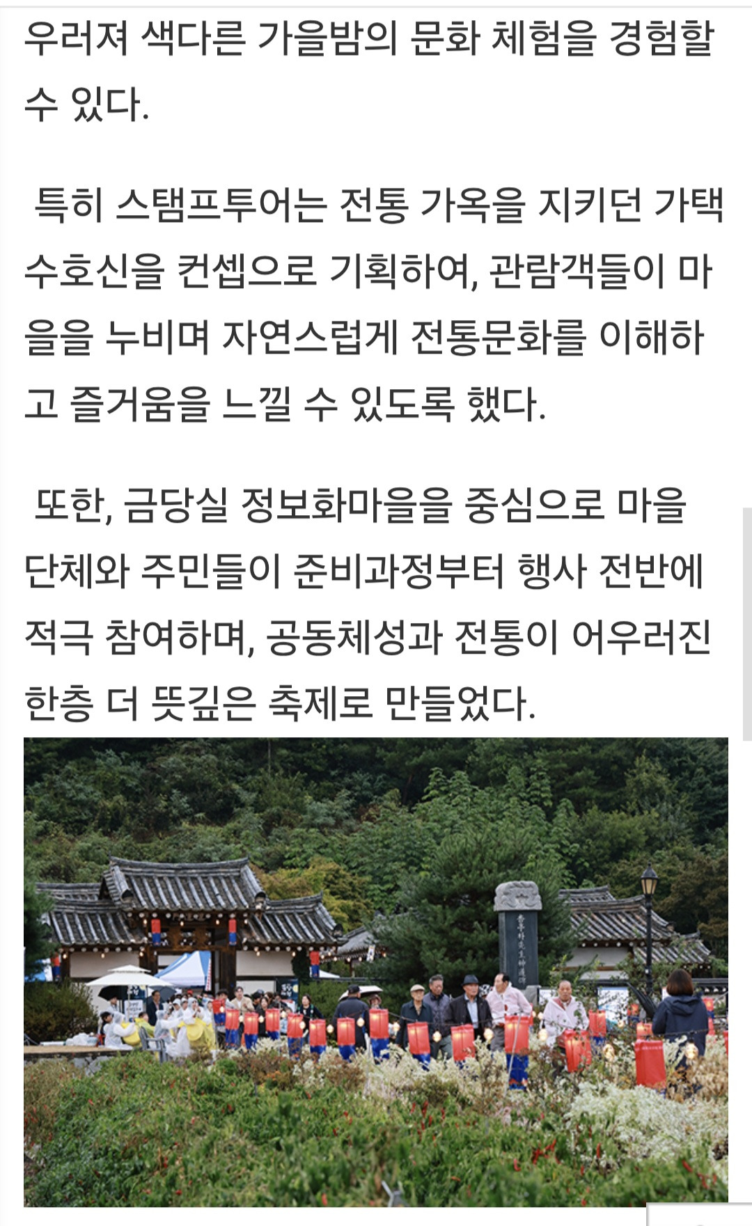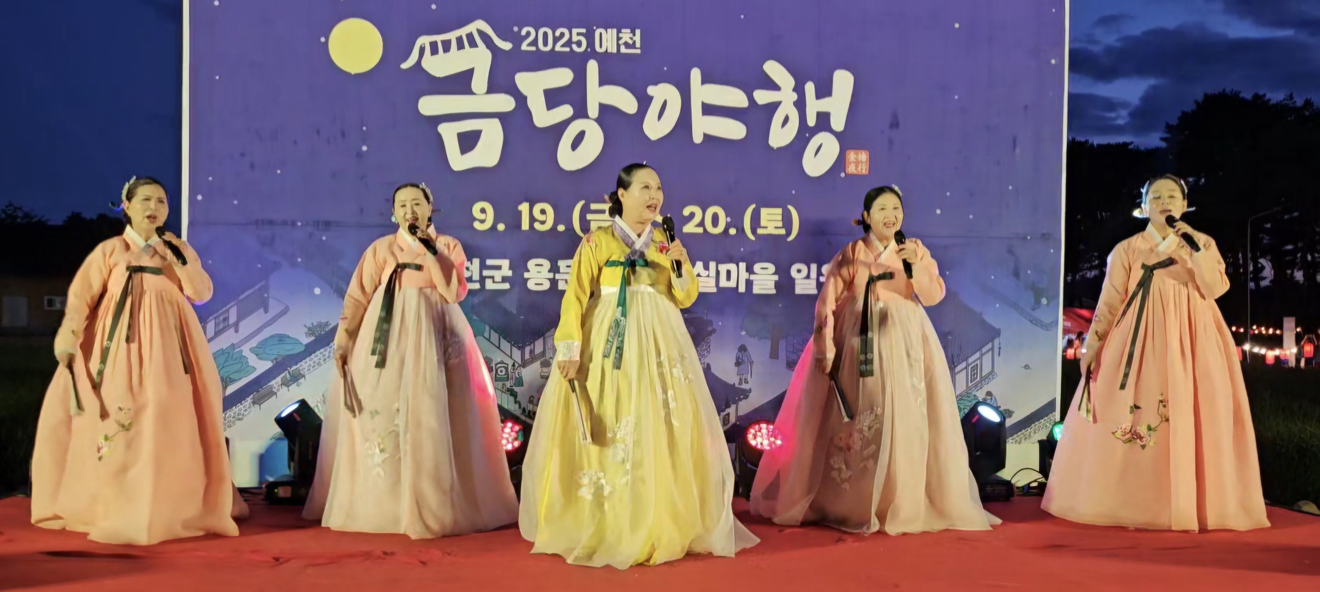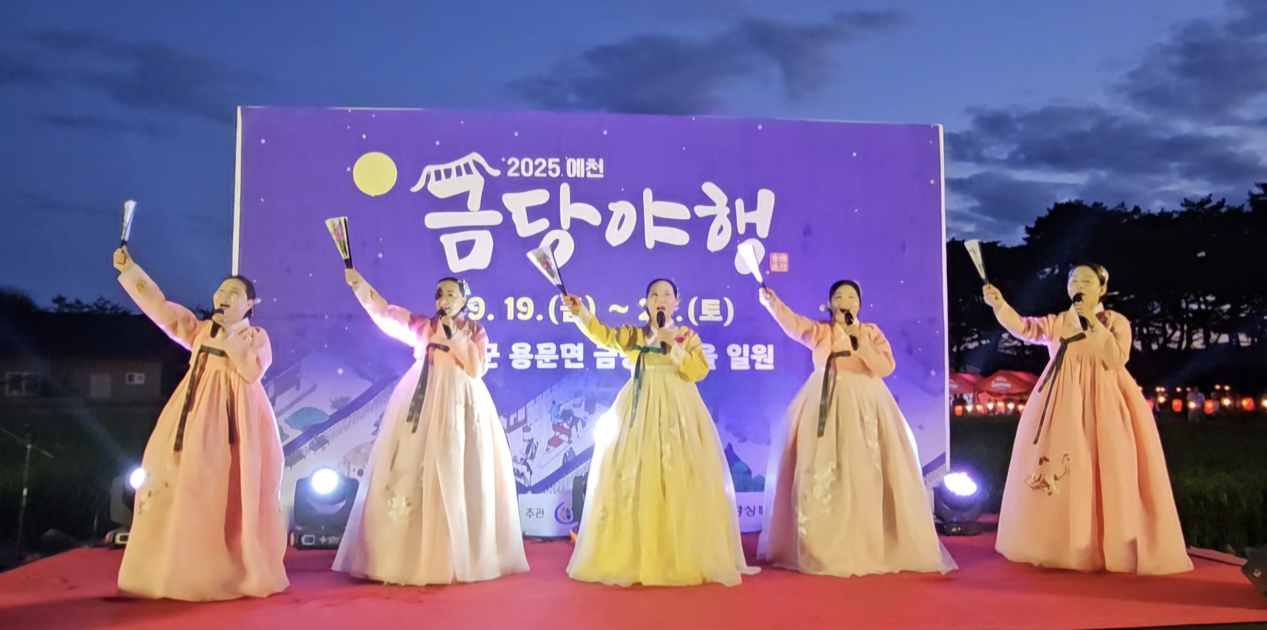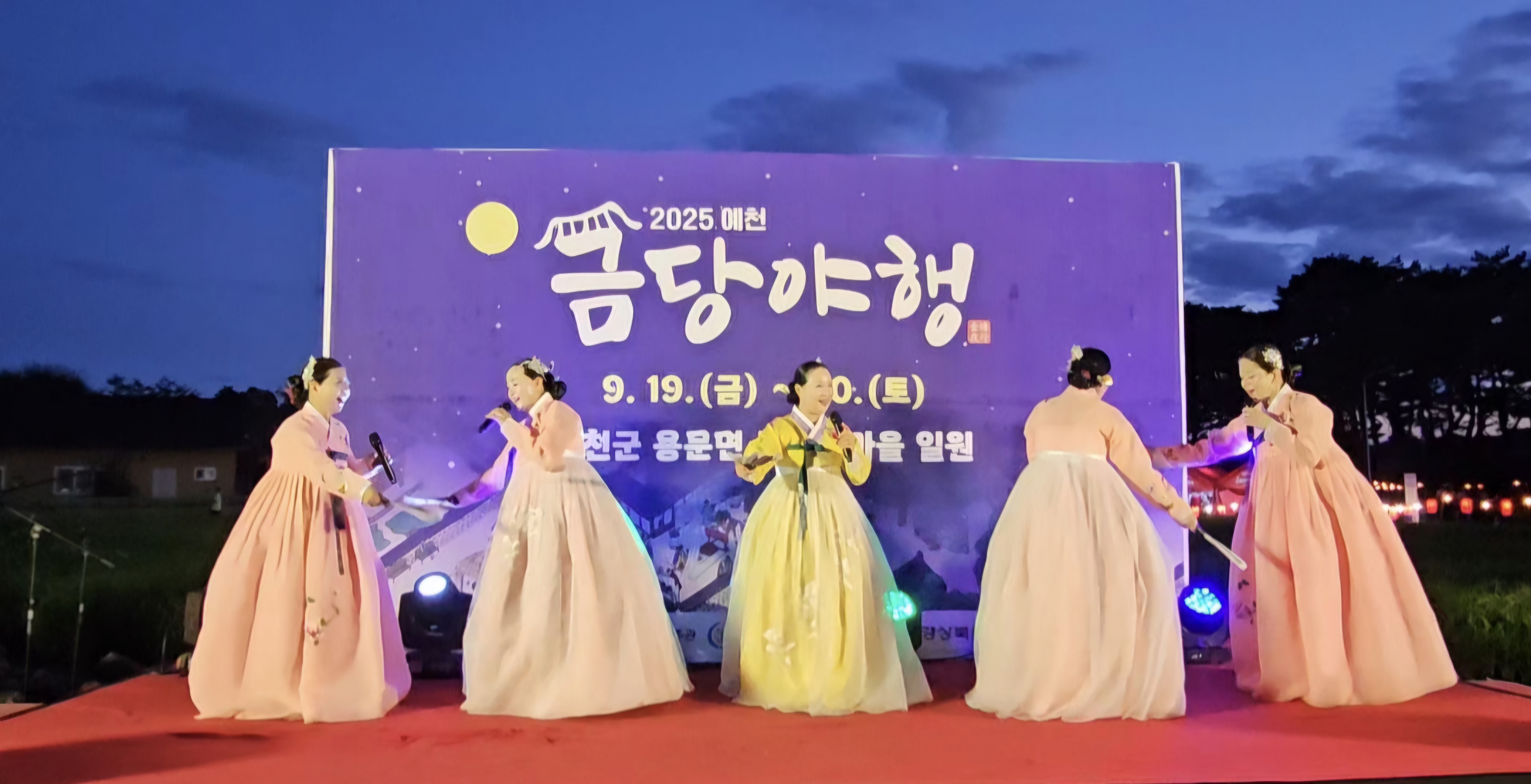 2025년 9월19일 20일 경북예천군 용문면 금당실 전통혼레식, 금당실야경 (사) 예천토속아리랑보존회 국악 최수인 외 단원축하공연 작성자국악 최수인|작성시간25.09.21|조회수11 목록 댓글 0 글자크기 작게가 글자크기 크게가 다음검색 현재 게시글 추가 기능 열기 북마크 공유하기 신고 센터로 신고 댓글 댓글 0 댓글쓰기 답글쓰기 댓글 리스트