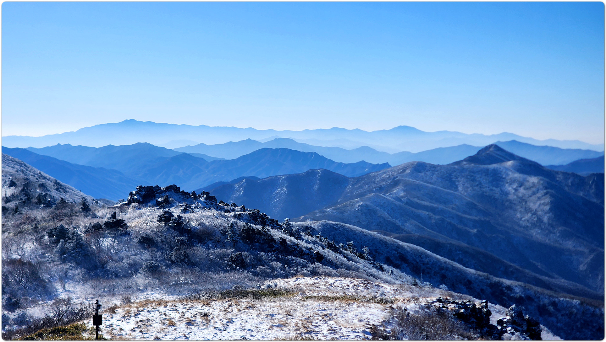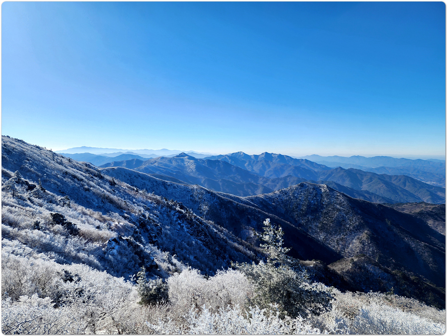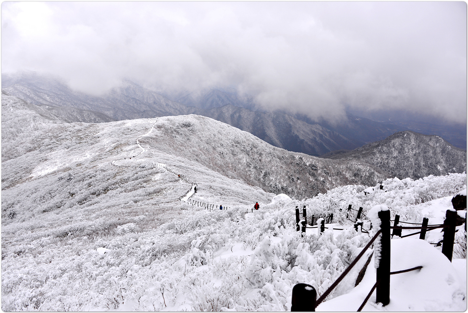 이어지는 능선에 피어나는 상고대(눈꽃)가