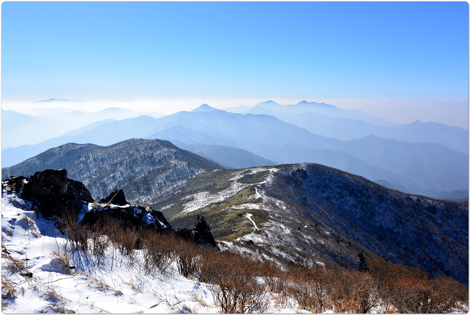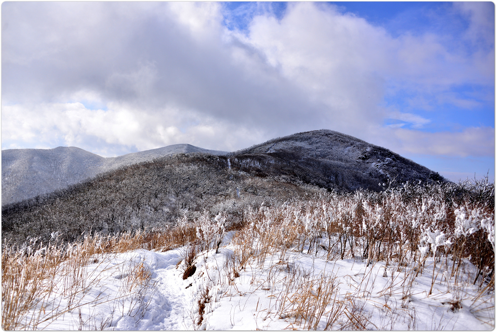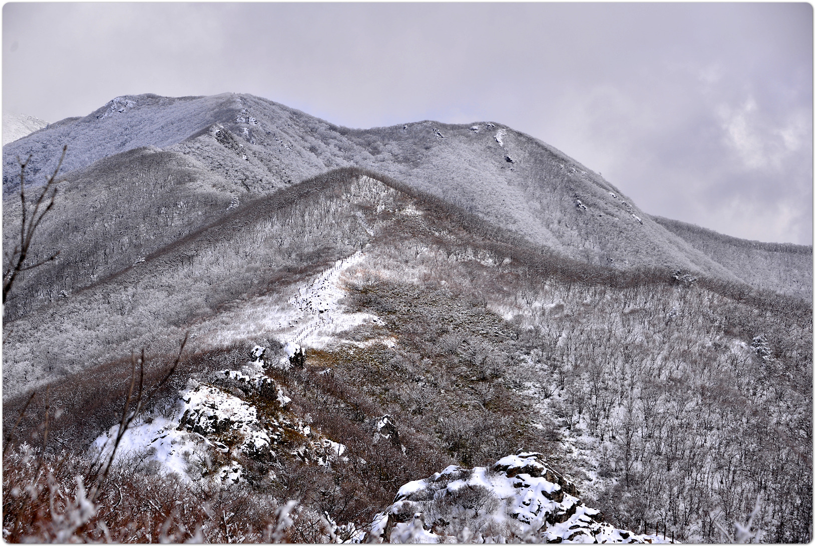 이어지는 능선에 피어나는 상고대(눈꽃)가