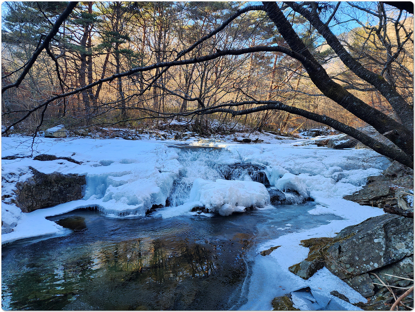 구천동 어사길의 호젓한 설경.