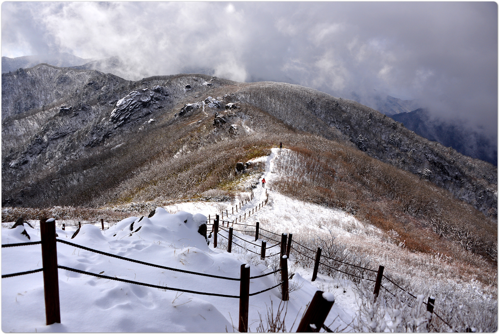 능선을 타고 올라오며 얼어붙어