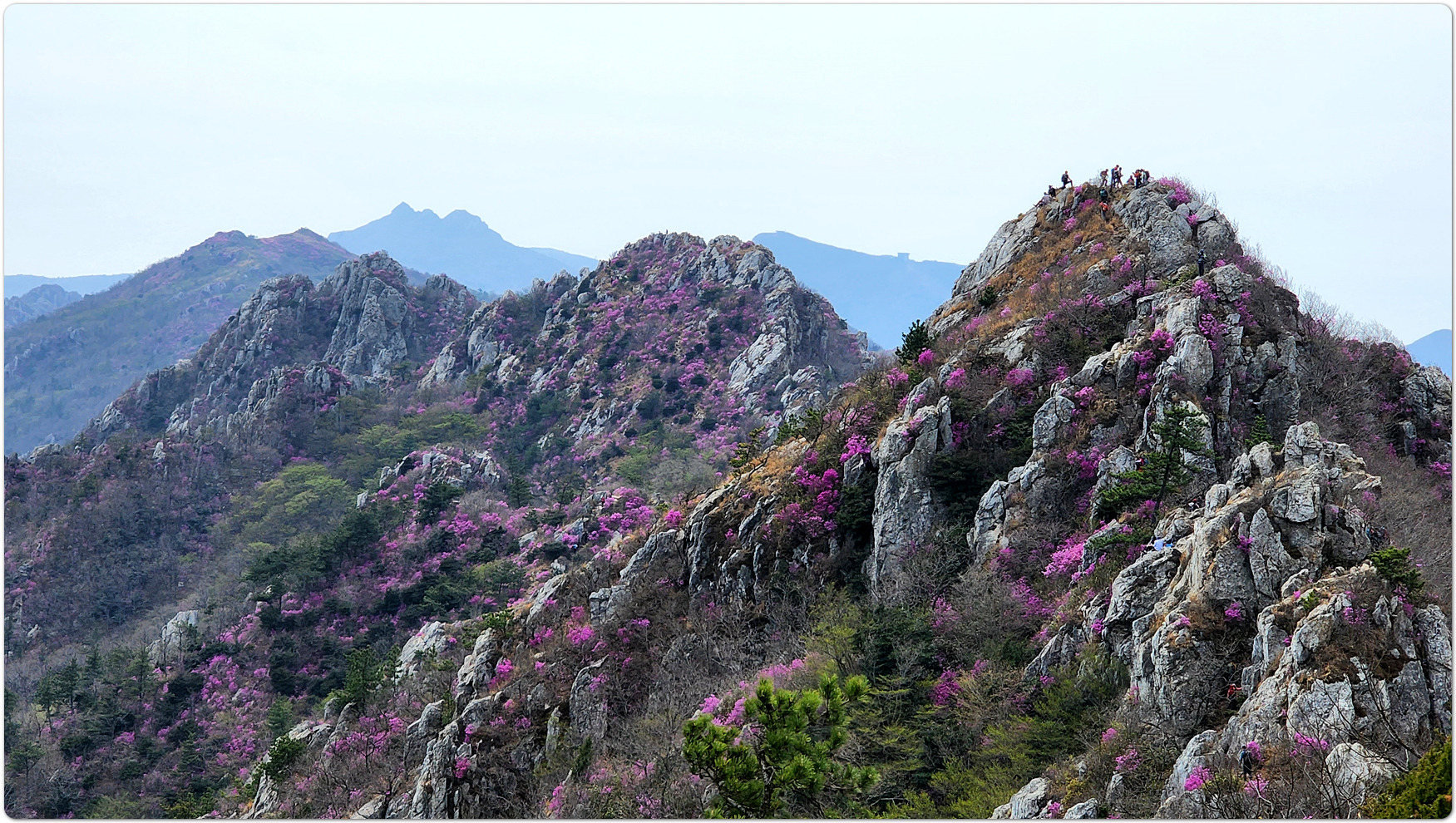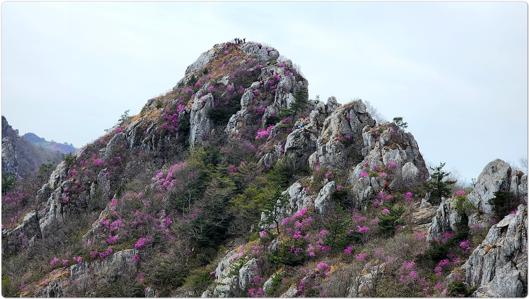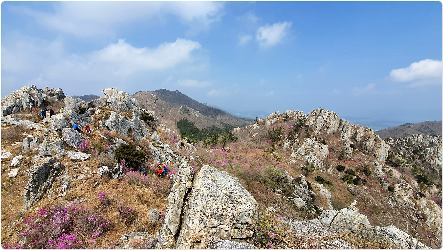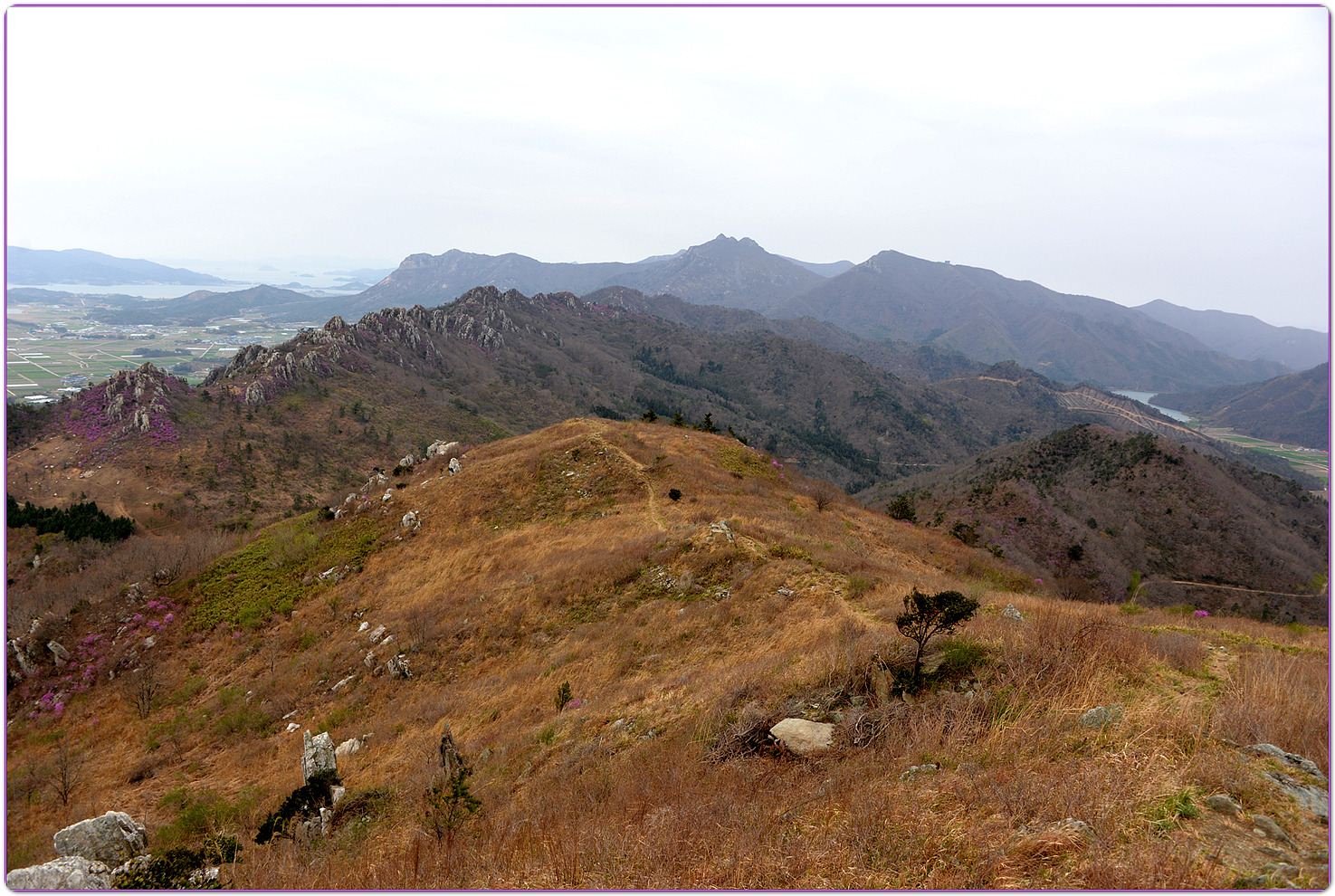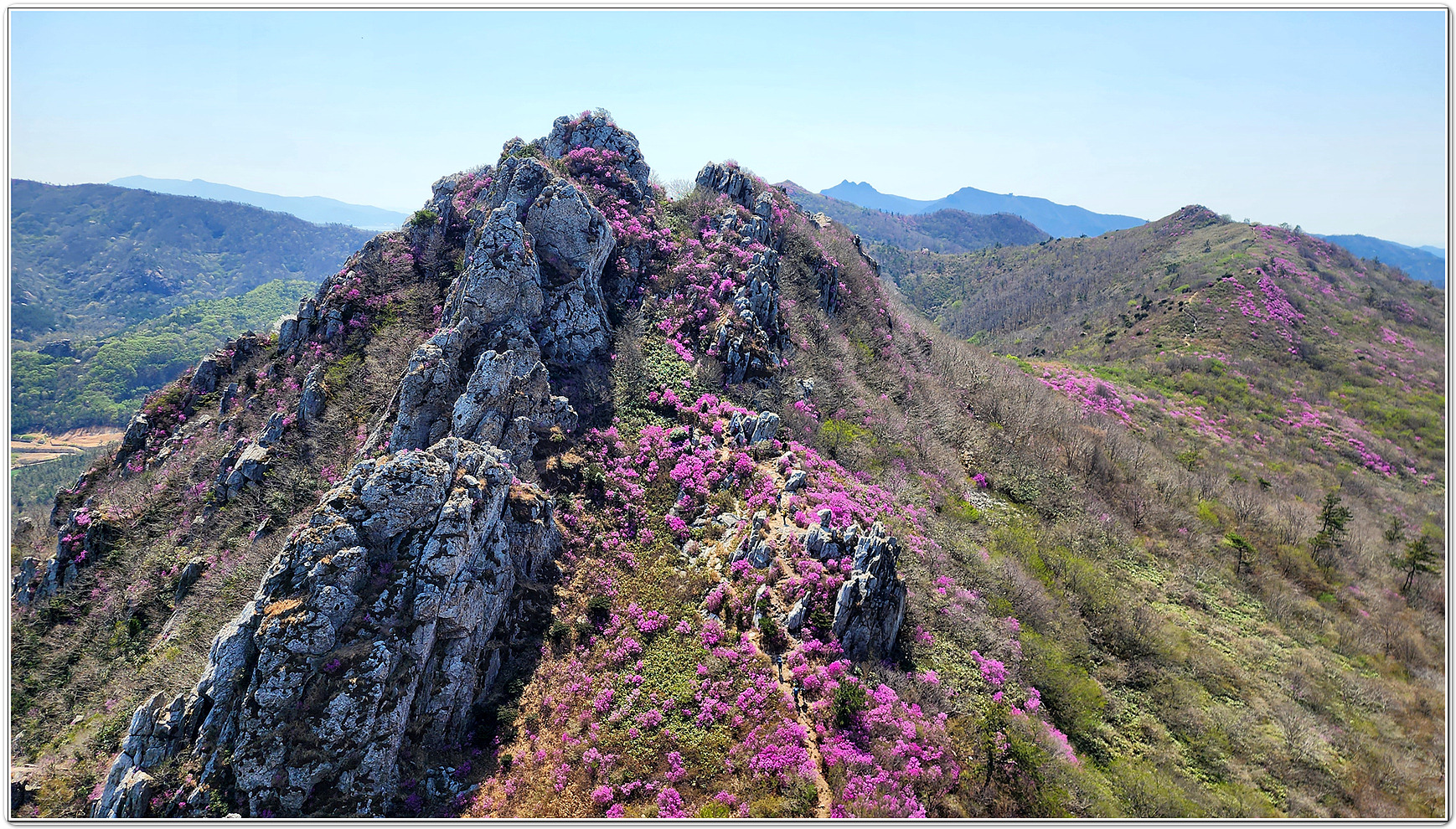 | 덕룡산과 주작산은 해발 400m대의 낮은 고도를 지녔지만, 거친 암릉과 빼어난 다도해 조망이 어우러져 산행의 묘미와 시각적인 즐거움을 동시에 선사하는 곳입니다. ▣ 덕룡산 (德龍山, 432m): 용이 꿈틀거리는 남도의 소금강 덕룡산은 이름 그대로 '덕스러운 용'이 힘차게 꿈틀거리며 비상하는 듯한 거친 암릉 지대를 품고 있습니다. ☞산세와 지형: 설악산의 공룡능선을 뚝 떼어다 남도 바닷가에 옮겨놓았다는 평가를 받으며 남도의 소금강','남도의 공룡능선'이라는 화려한 수식어를 자랑합니다. 동봉(420m)과 서봉(432m) 쌍봉을 중심으로 깎아지른 듯한 암봉들이 연달아 솟아 있어 고도표만 보고 만만하게 접근했다가는 큰코다치기 십상인 맹렬한 산세를 지녔습니다. ☞조망과 매력: 험난한 암릉을 오르내리는 내내 강진만과 완도, 해남 일대의 푸른 다도해 비경이 파노라마처럼 펼쳐집니다. 거친 바위와 부드러운 바다의 대비가 극적인 아름다움을 연출합니다. ☞역사적 정취: 산자락 주변으로는 다산 정약용 선생이 유배 생활을 했던 다산초당과 천연기념물 동백림으로 유명한 백련사 등 강진의 깊은 역사와 문화 유적지가 자리하고 있어, 능선을 걸으며 남도의 풍부한 인문학적 정취를 함께 느낄 수 있습니다. ▣ 주작산 (朱雀山, 428m): 붉은 봉황이 날개를 펴고 날아오르다 주작산은 산의 형세가 '붉은 봉황(朱雀)'이 날개를 활짝 펴고 강진만을 향해 날아오르는 모습을 닮았다고 하여 붙여진 이름입니다. ☞산세와 지형: 덕룡산과 맥을 같이 하지만, 그 느낌은 사뭇 다릅니다. 덕룡산이 남성적이고 거칠다면, 주작산은 날카로운 암릉 사이에 부드러운 억새능선과 흙길이 조화롭게 섞여 있습니다. 특히 주봉(428m)을 기점으로 오소재로 뻗어 내리는 암릉 구간은 봉황의 우측 날개에 해당하며, 톱니바퀴처럼 날카로운 바위 무리가 장관을 이룹니다. ☞계절의 백미: 주작산은 무엇보다 봄철 진달래 산행으로 전국적인 명성을 떨칩니다. 4월 초순이 되면 회백색의 거친 암봉들 사이로 붉은 진달래 군락이 융단처럼 피어나, 마치 봉황이 붉은 깃털을 뽐내는 듯한 황홀한 풍광을 빚어냅니다. ☞덕룡봉(475m)의 오해와 진실: 종주 코스 중에 만나는 가장 높은 봉우리인 덕룡봉(475m)은 행정구역 상 주작산에 속해 있어 종종 주작산 정상으로 오인받지만, 실제 주작산의 주봉은 작천소령 남쪽에 위치한 428m 봉우리(남주작산)입니다. 두 산을 하나로 엮는 연계 종주는 육체적인 고단함을 뛰어넘어, 한국의 산재한 명산들 중에서도 손꼽히는 성취감과 남도 특유의 진한 풍광을 안겨주는 훌륭한 코스입니다. 또한 풍수지리나 산세를 설명할 때 덕룡산과 주작산을 하나의 덩어리로 묶어서 "강진만을 향해 날아오르는 거대한 봉황"으로 비유하곤 합니다. 이를 부위별로 나누어 보면 다음과 같습니다. ◐봉황의 머리: 주작산 주봉 (남주작산, 428m) ◐봉황의 우측 날개: 작천소령에서 해남 오소재 방향으로 뻗어 내린 거친 암릉 구간 (주작산 톱니바퀴 능선) ◐봉황의 좌측 날개: 작천소령 북쪽에서 시작해 덕룡산 서봉, 동봉을 거쳐 소석문까지 이어지는 웅장한 암릉 구간 (덕룡산 능선) 즉, 첨단산악회 회원분들이 소석문에서 출발해 덕룡산의 동봉과 서봉을 넘고 작천소령까지 오시는 길이 거대한 봉황의 왼쪽 날개를 타고 올라오는 여정인 셈입니다. 그리고 작천소령을 기점으로 방향을 틀어 오소재로 내려가는 길이 오른쪽 날개를 타고 하산하는 길이 됩니다. 양쪽 날개 모두 기암괴석이 날카롭게 솟아오른 거친 바위산이라, "과연 전설 속 봉황의 깃털(암봉)을 밟고 지나는 길답다"라는 탄성을 자아내게 합니다. |