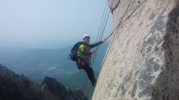 - 총 4번을 하강 했는데, 세번째 하강 지점이 아래 필성이가 내려오고 있는 사진이다.