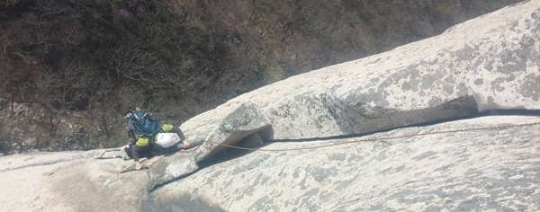 오랜만의 등반이라 민표역시 첫마디를 오르며 몸이 무겁다는 말을한다. 그래도 2피치 겹크랙을 오르는 모습을 보니 바위에 적합한 타고난 몸이다.