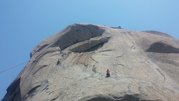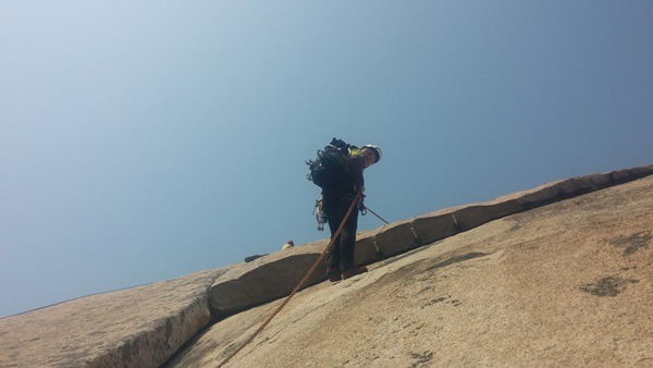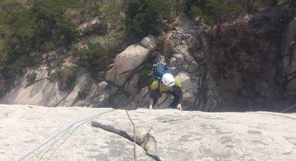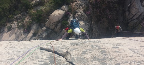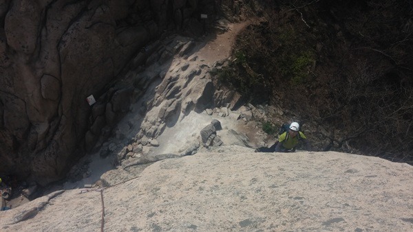 - 하강자들이 내려오는 길이라 등반자와 하강자가 겹치는 구간이다.