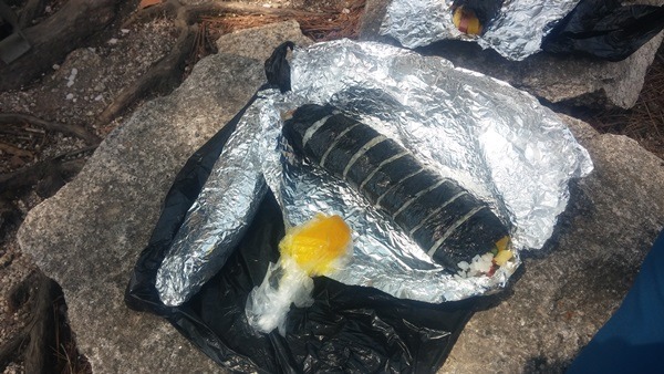 - 우린 먹을 거라곤 김밥 다 먹고 인원도 달랑 둘이다.