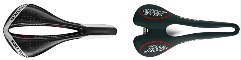 페달링이 불편해지는 것을 방지하기 위해 안장 코부분은 더욱 가늘게 제작하기도 합니다. (산마크로 만트라 / 셀레 SMP등)