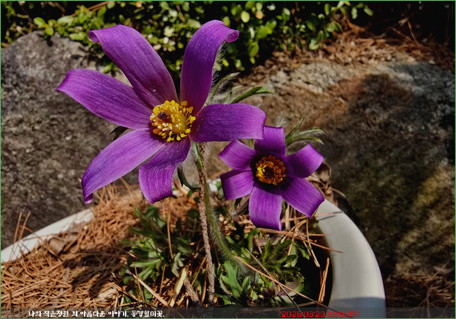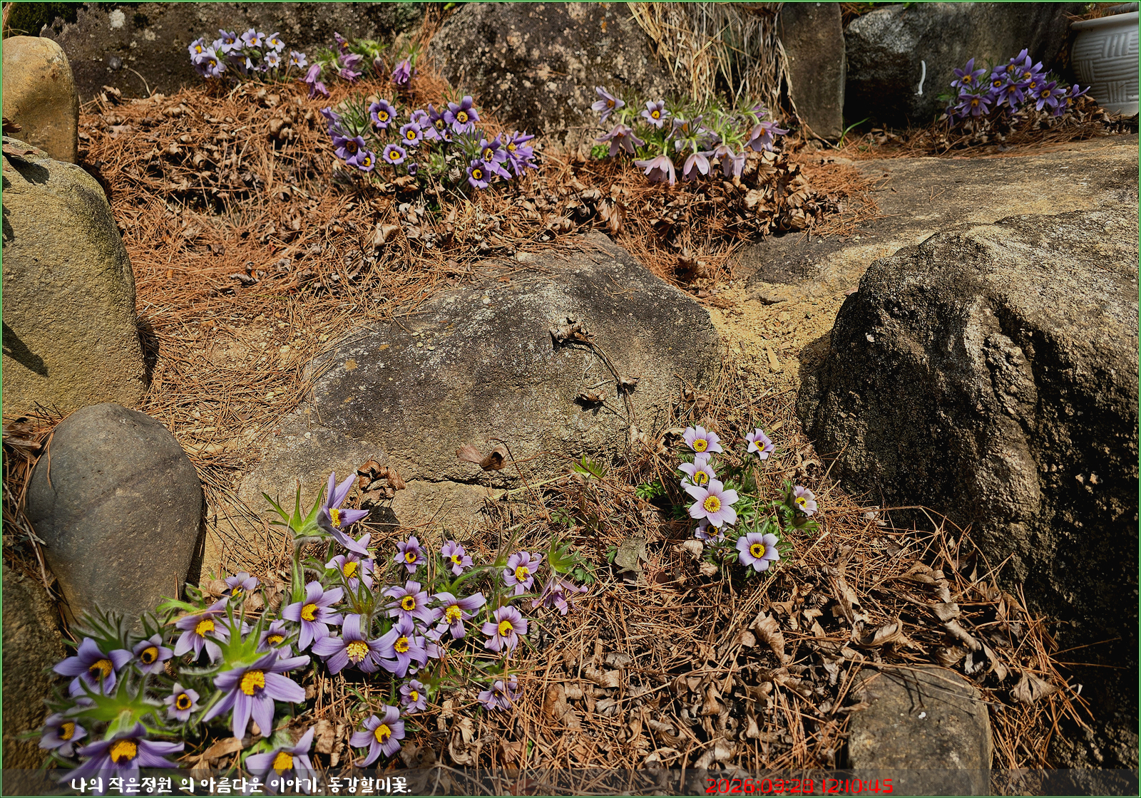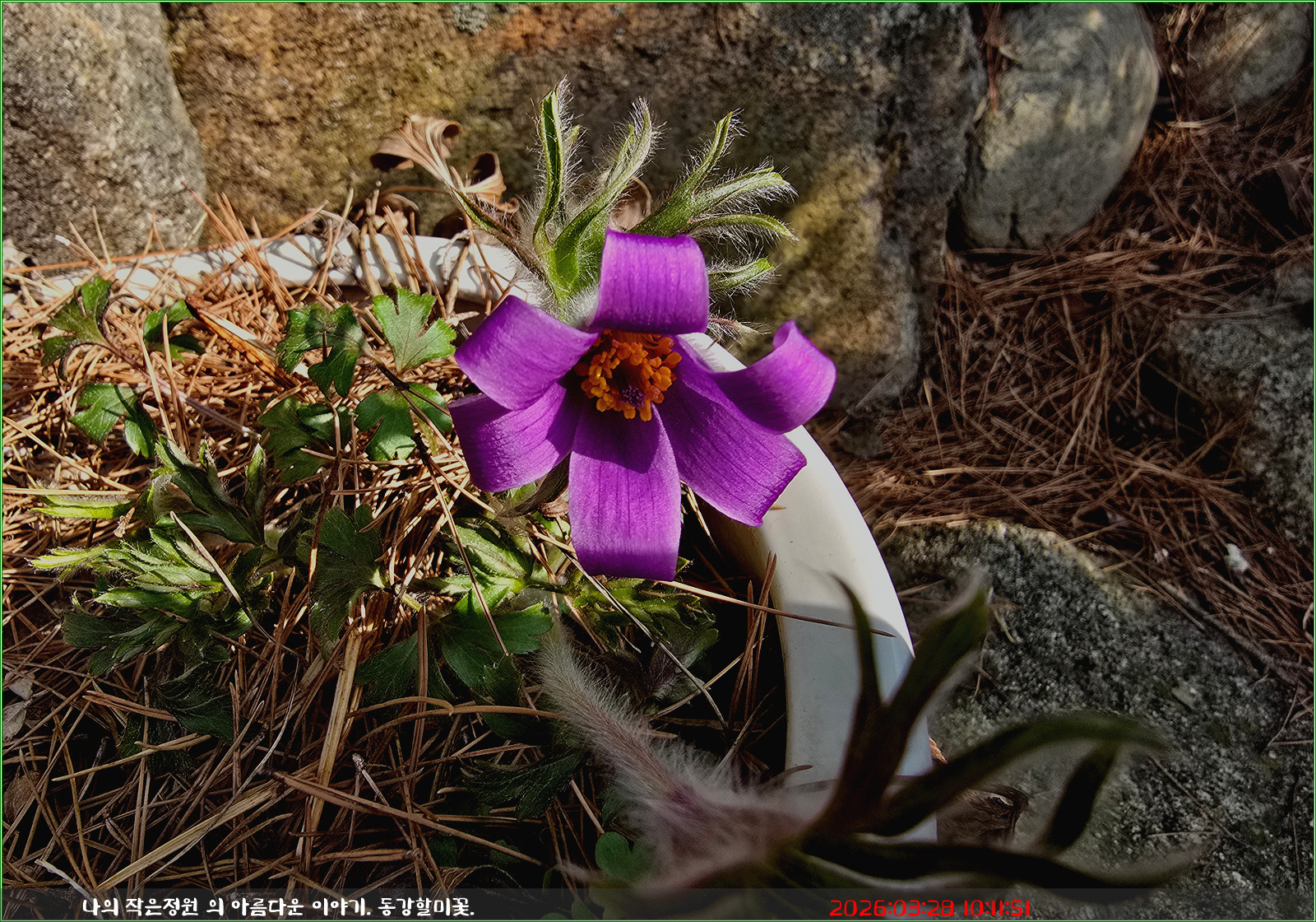 우리 집 정원에 제일 먼저 찾아와 봄소식을 전해주는 동강할미꽃이 피었습니다.