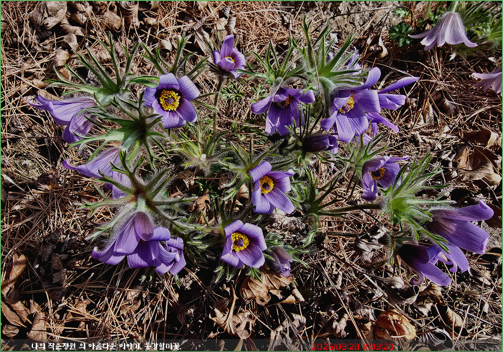 외형: 일반 할미꽃보다 크기가 작고, 꽃이 필 때 잎이 함께 나오는 특징이 있습니다.