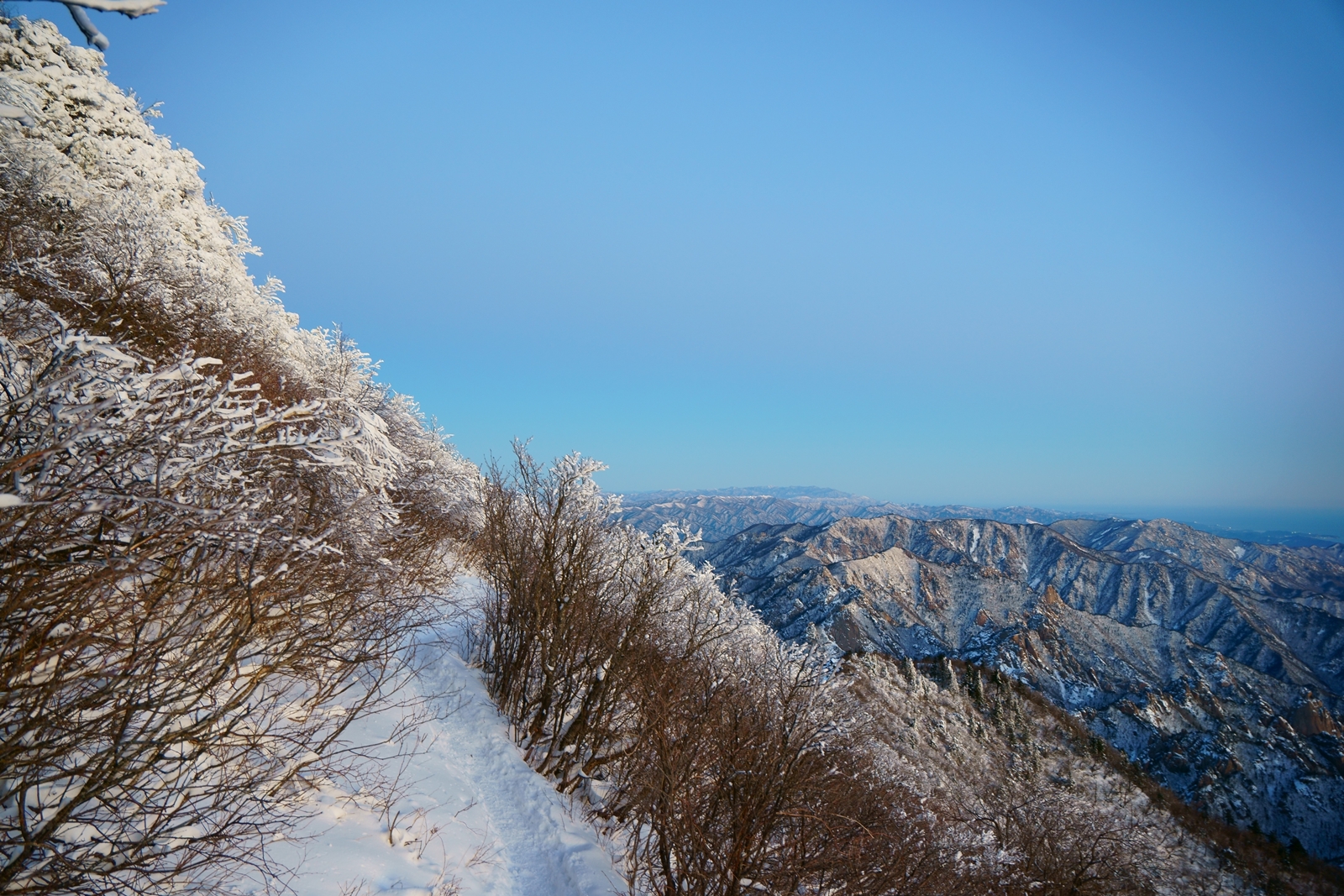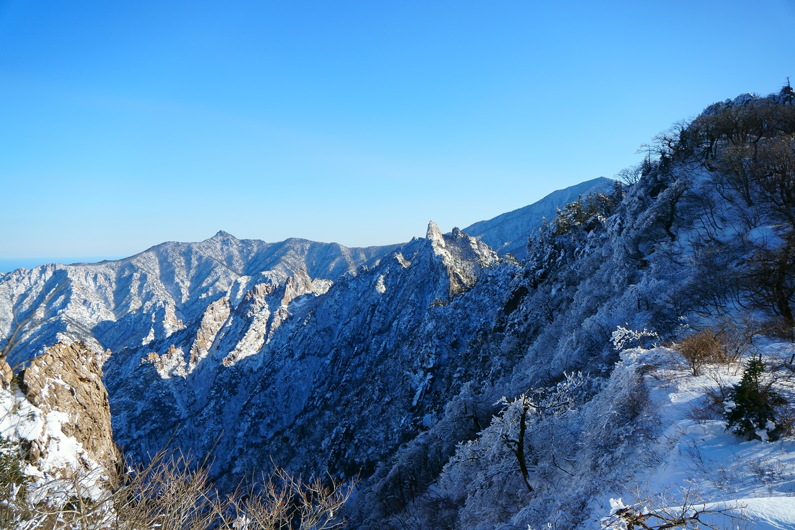 나한봉부터 화사한 상고대로 멋진 설경이 펼쳐졌지만 산행시간에 쫓겨 사진을 찍지도 못하고 걷게 됩니다.