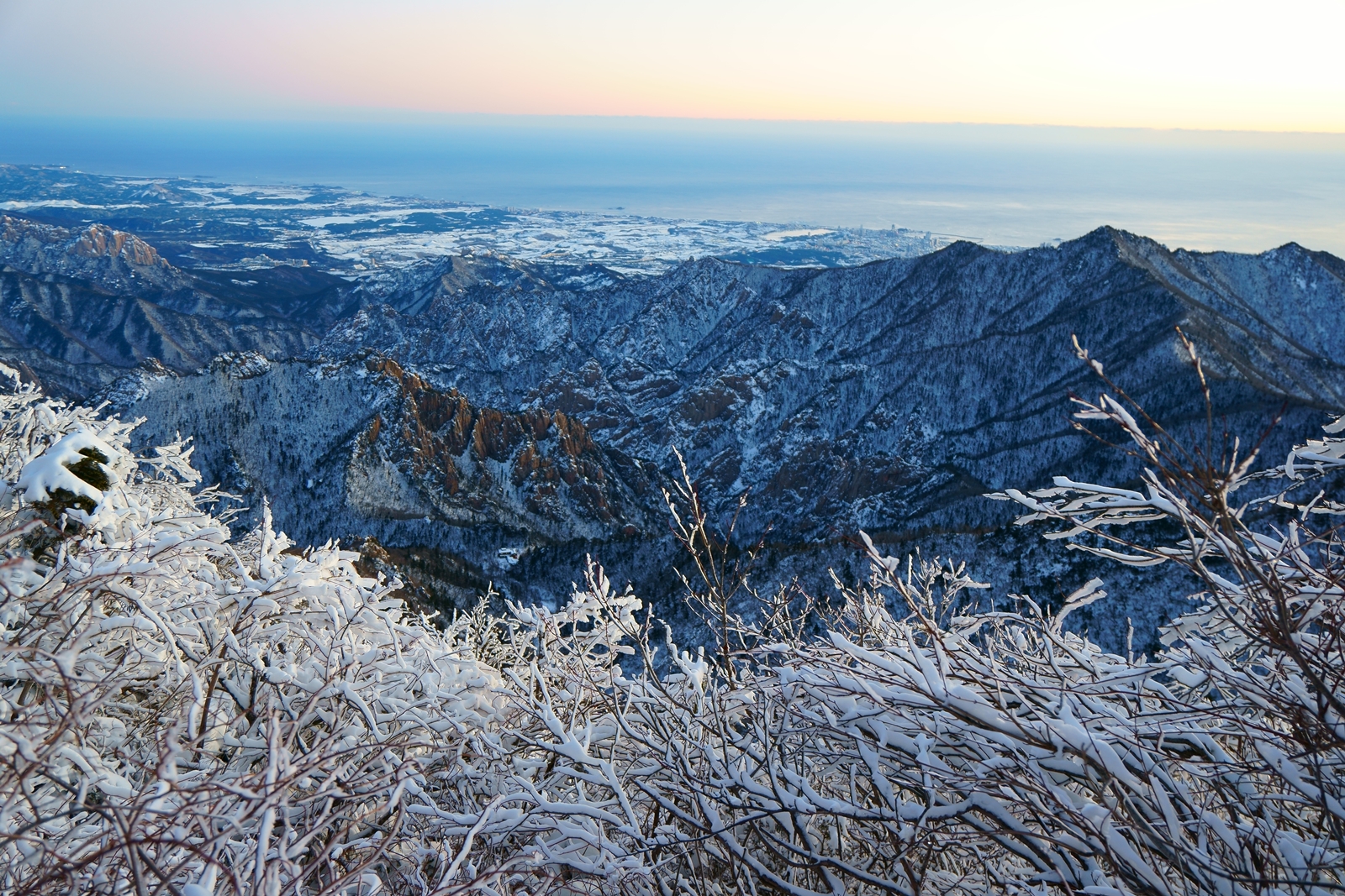 중청 사면으로 빙화도 상고대도 멋지게 남아있어 사진을 담으며 가야할 공룡능선의 풍경에 마음이 설레입니다.