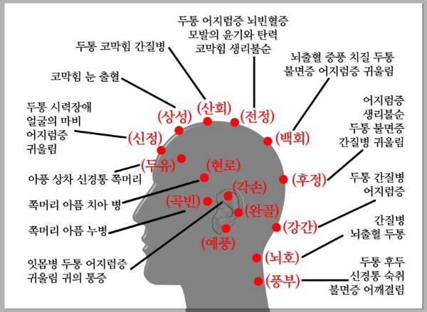온 몸을 치료하되 머리 부분에서만 치료하는 치료법으로 두피침, 이침, 안침 등이 있습니다. 즉 머리카락이 난 부분에만 침을 놓거나 귀에만 침을 놓거나 혹은 눈 주위에만 침을 놓아온 몸의 질병을 치료할 수 있다는 겁니다. 그러니 조탁법으로 머리 전체에 자극을 주면 온 몸이 골고루 좋아지는 현상이 나타납니다. 의사가 아니어도 전문지식이 없어도 걱정 없습니다. 그러니 많이 아픈 부위를 집중적으로 자극하다 보면 좋아집니다.