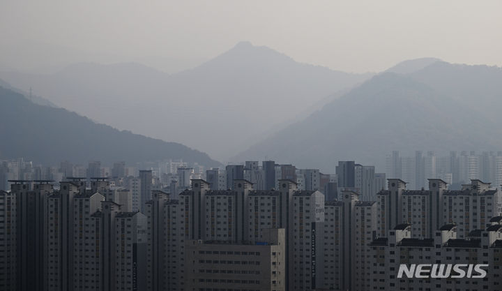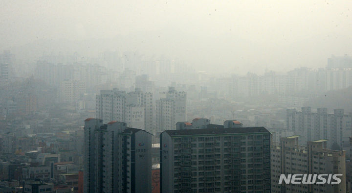 이영주 기자 = 광주지역 초미세먼지 농도가 '나쁨' 수준을 보인 23일 오후 광주 남구 사직공원에서 바라본 도심이 뿌옇다