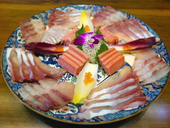 제주도 '삼바리회센타'의 특대방어 모둠회. 방어는 현재 겨울 생선의 절대 강자다. 손민호 기자