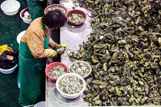 우리에게 훨씬 익숙한 굴이 수하식 굴이다. 수하식 굴의 70% 이상이 경남 통영 앞바다에서 재배된다. 통영 앞바다는 문자 그대로 굴밭이다. 전체 면적이 53.71㎢로, 축구장 8000개 크기다. 통영 앞바다의 굴 생산량은 연 4만t에 육박한다. 껍데기 벗긴 알굴만 잰 무게다.