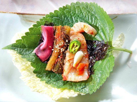 과메기는 온갖 채소와 해초를 넣고 쌈을 싸서 먹는다. 백종현 기자