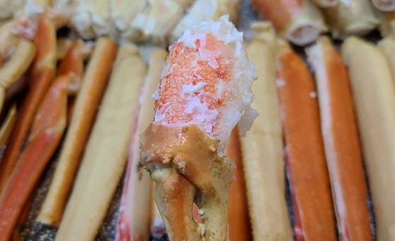 박달대게를 주문하면 일일이 해체한 상태로 나온다. 사진은 대게 집게다리. 가장 맛있는 부위다. 손민호 기자