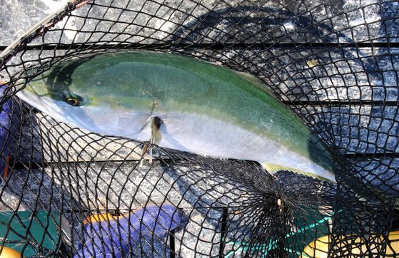 제주도 모슬포 가두리 양식장에서 기르고 있는 방어. 손민호 기자