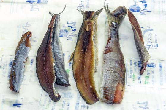 과메기는 꽁치 과메기와 청어 과메기로 구분된다. 왼쪽 작은 것이 꽁치고 오른쪽 큰 것이 청어다. 백종현 기자