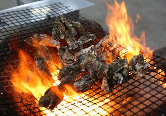 전남 장흥 남포 마을의 석화 구이. 설날 즈음에 딴 석화가 제일 맛있다고 한다. 손민호 기자