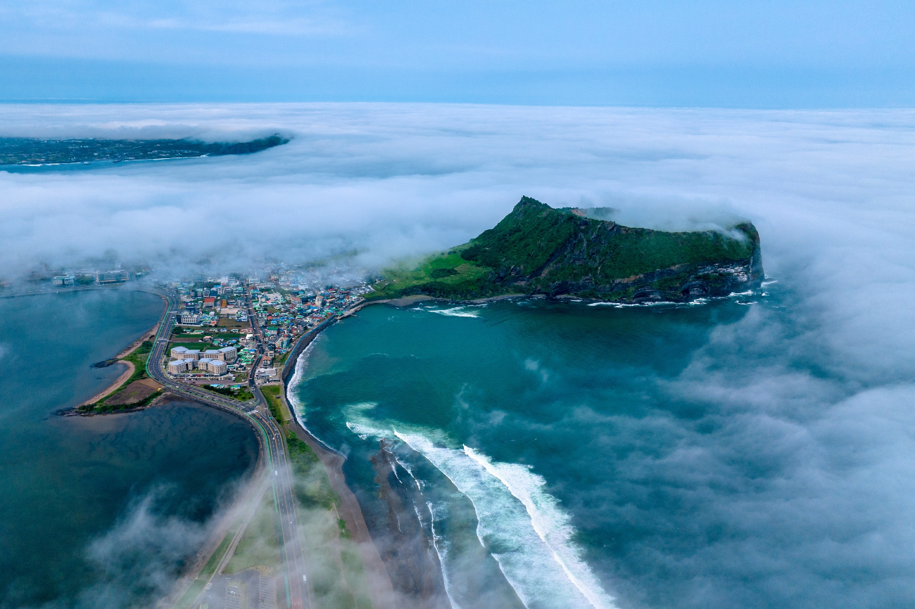 14. 부문: 입선 작품명: 해무가 밀려오는 일출봉 드론 촬영지역: 제주특별자치도 서귀포시 성산읍 촬영자: 김영태