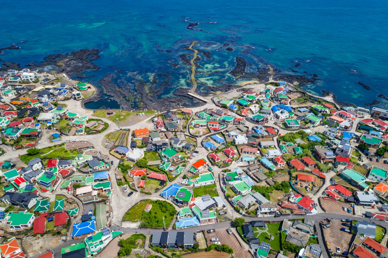 4. 부문: 입선 작품명: 김녕 바닷길과 소도리마을 드론 촬영지역: 제주특별자치도 제주시 구좌읍 촬영자: 표길영