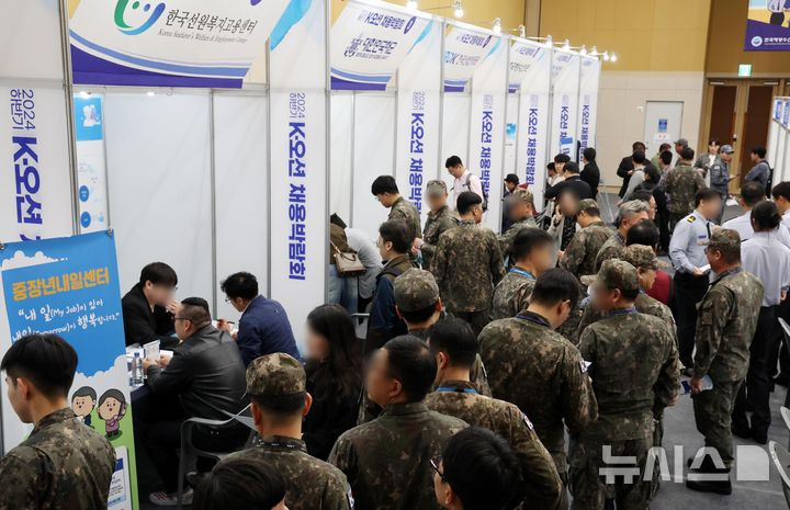 하경민 기자 = 2024 하반기 K-오션 채용박람회가 열린 5일 부산 동구 부산항국제전시컨벤션센터 행사장에서 구직자들이 구인업체 관계자와 현장면접 또는 채용상담을 하고 있다.